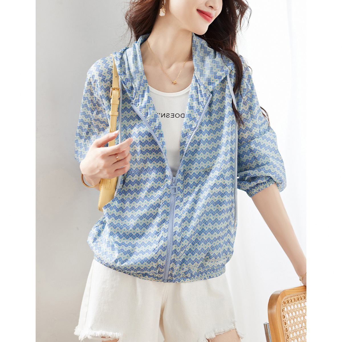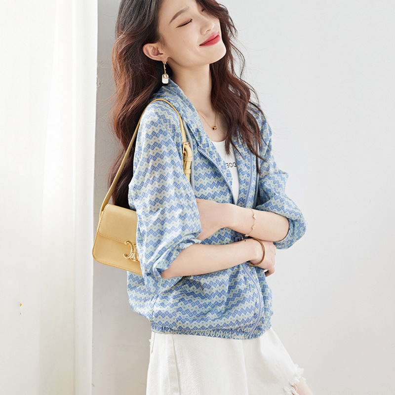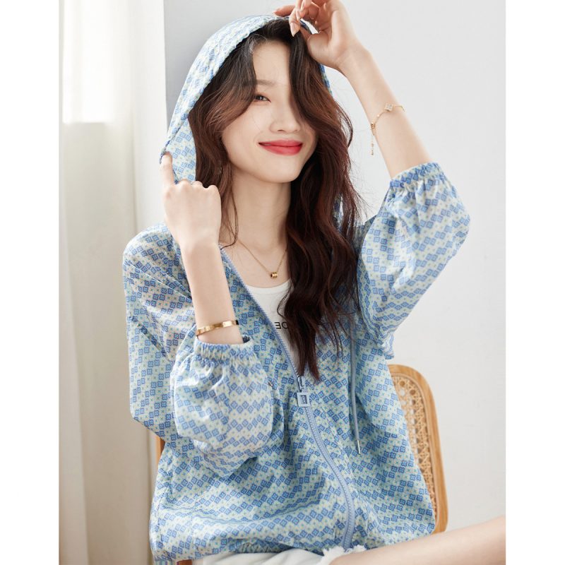nameOriginal | Foreign Trade Printed Hooded Long-sleeved Sunscreen Jacket Women's 2023 Summer New Casual Loose Lightweight Breathable Jacket Trendy |
