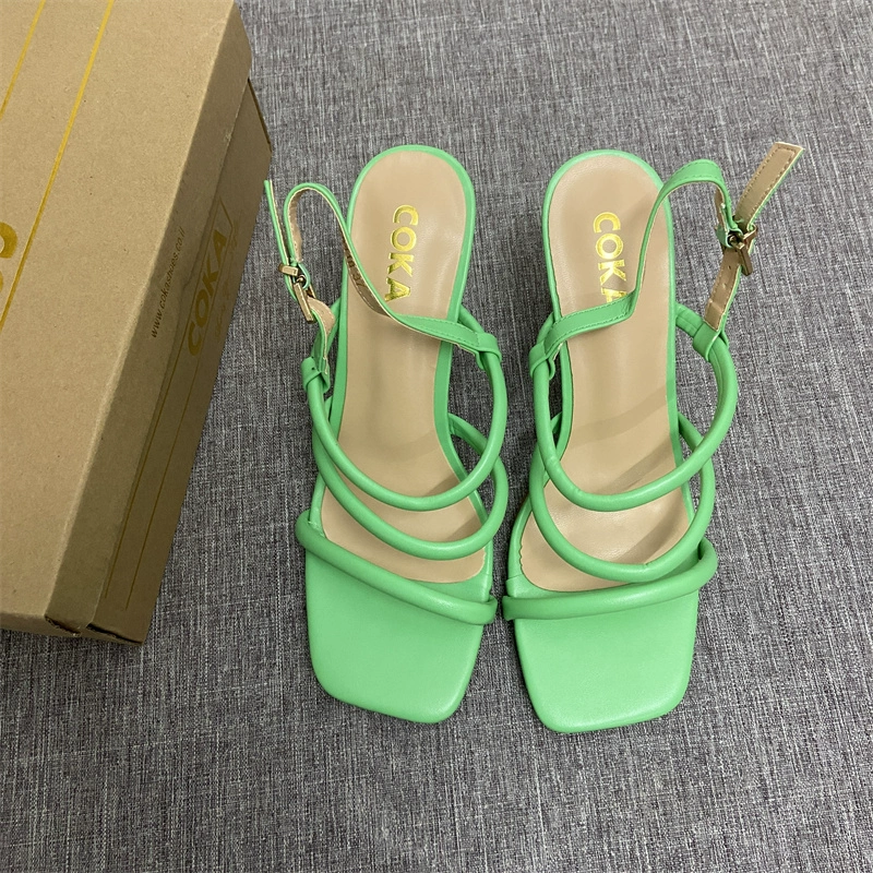 Foreign trade Roman style square toe sexy stiletto open toe sandals