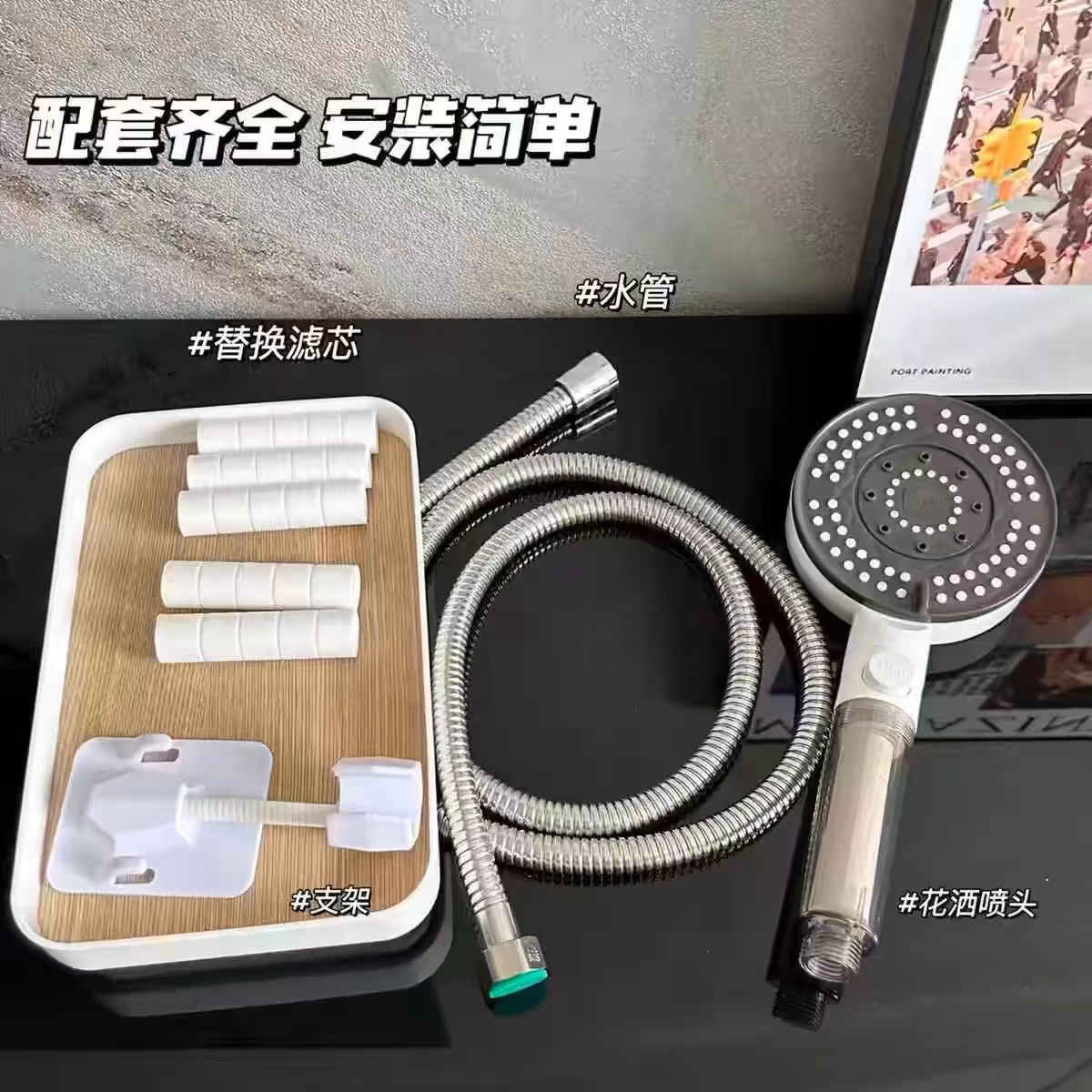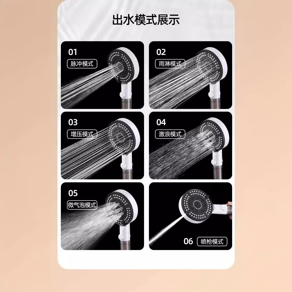 | nameOriginal | Foreign trade single six-speed adjustable spray gun booster shower head bathroom shower hose base filter suit |