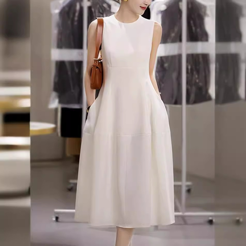 | nameOriginal | Foreign Trade Slimming Skirt 2024 Summer New Light Dress Vessel Skirt Stand-cut Round Neck Sleeveless Slim-fit White Moonlight Long Dress |