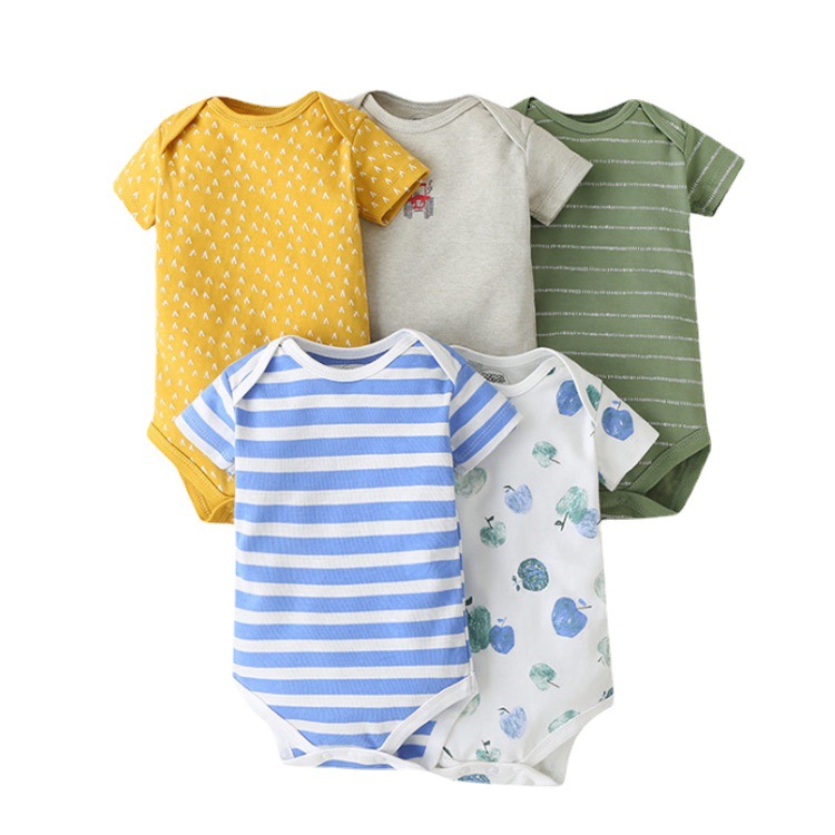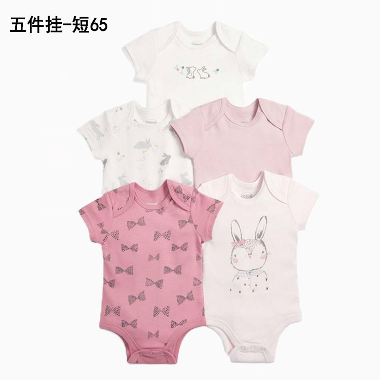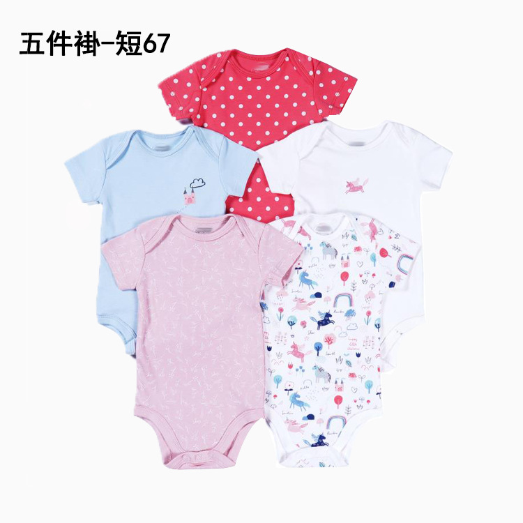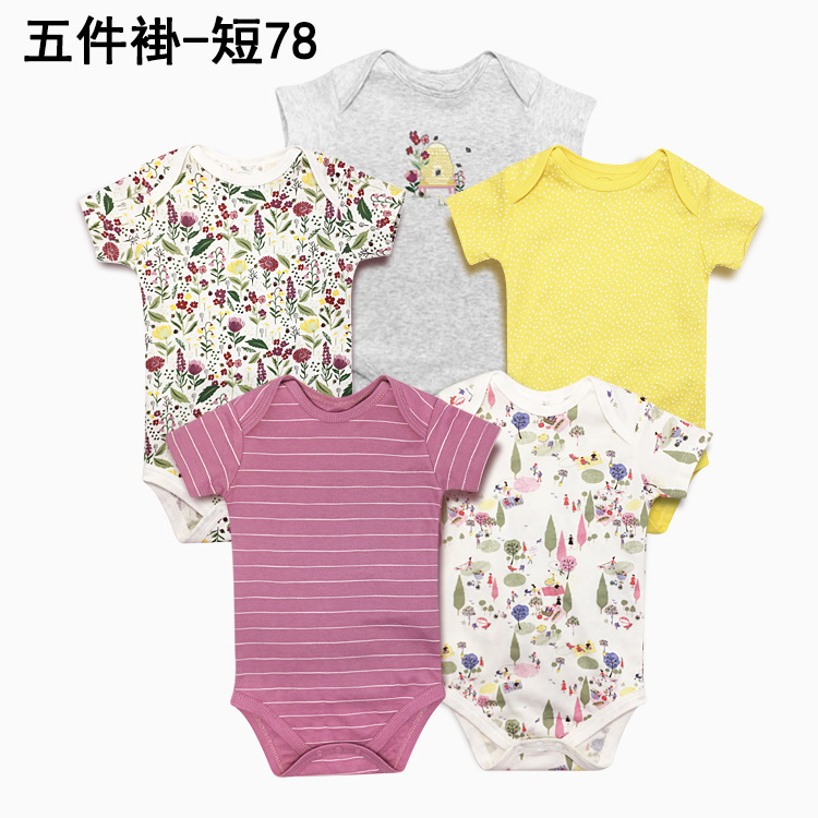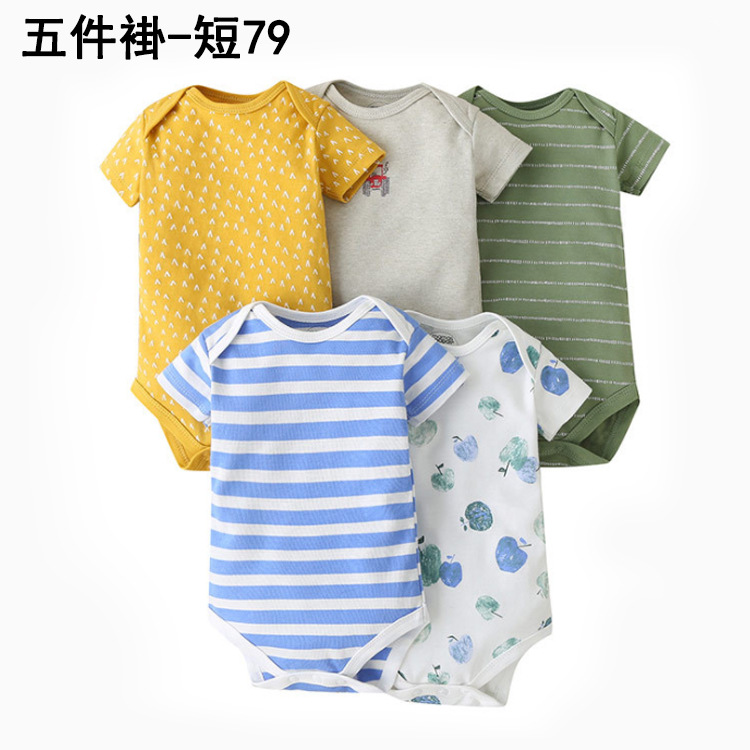 Foreign trade source factory newborn short sleeve one-piece bag fart romper high quality cotton five-piece bag gift box suit baby