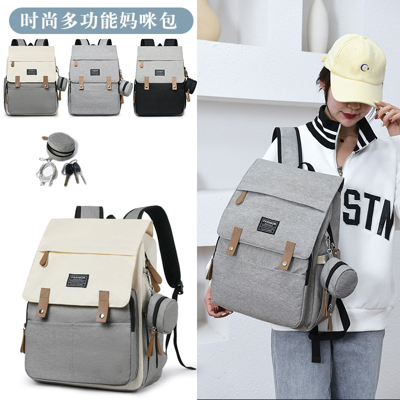 Foreign Trade Southeast Asia New Mummy Bag Fashion Color-matching Simple Large Capacity Shoulder Mummy Bag Multi-function Backpack Women