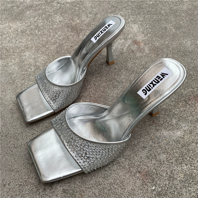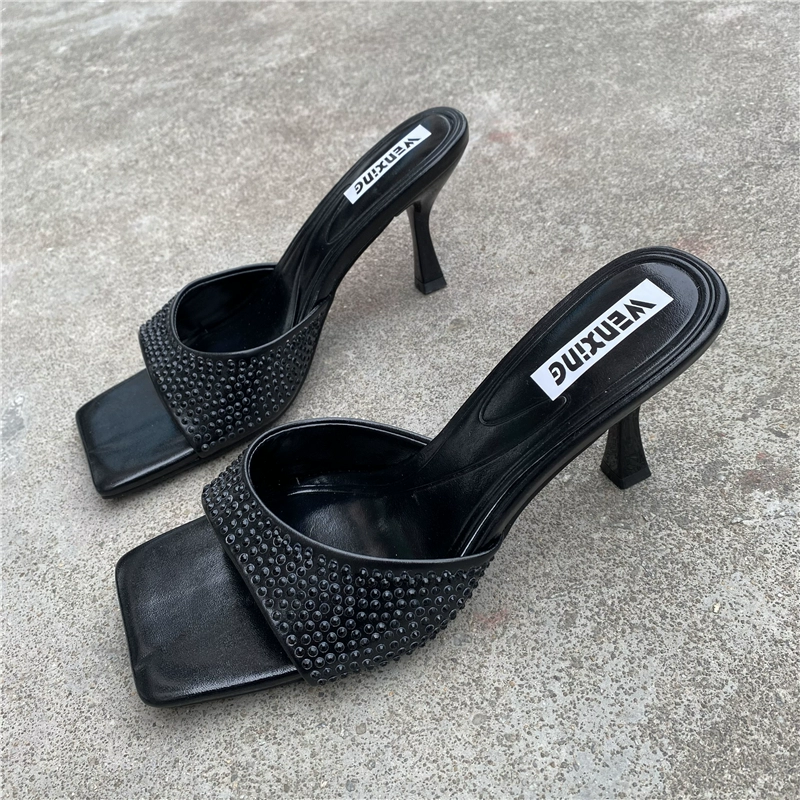Foreign trade stiletto square toe open toe rhinestone sexy sandals