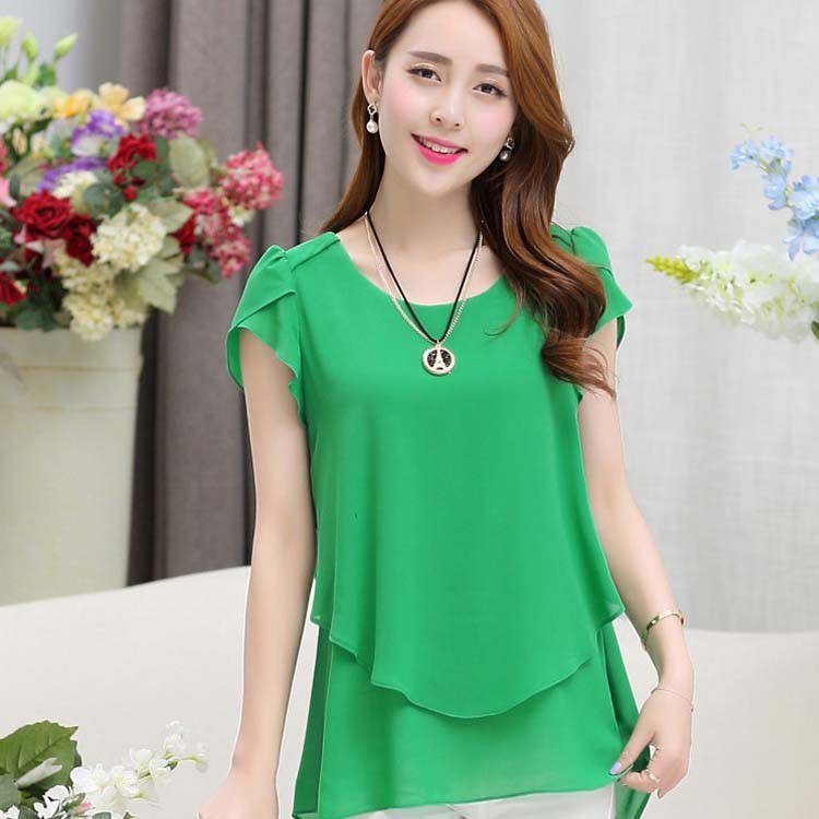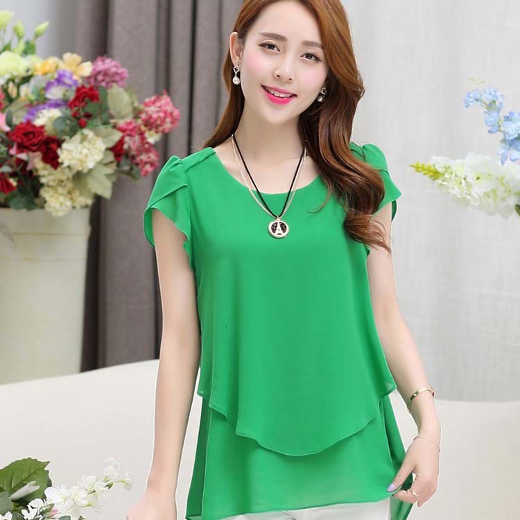 | nameOriginal | Foreign trade summer new Korean style slim-fit mid-length short-sleeved chiffon shirt top plus size loose bottoming shirt small shirt for women |
