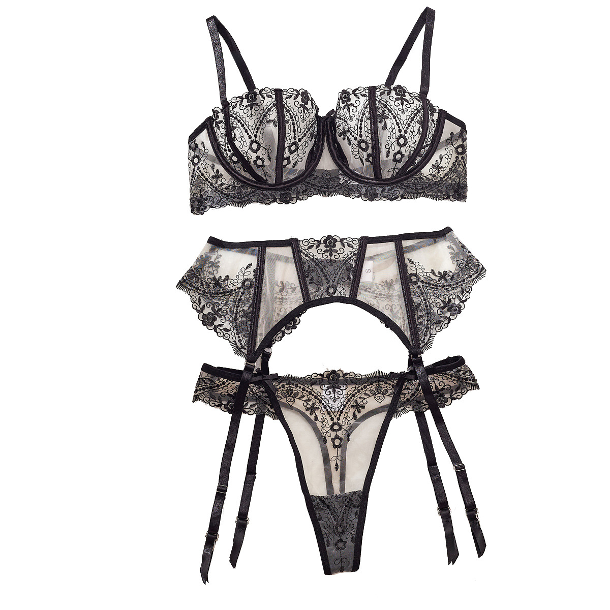 | nameOriginal | Foreign trade supply 2024 summer new flower embroidery pick-up perspective mesh sexy underwear three-piece women |