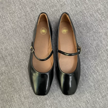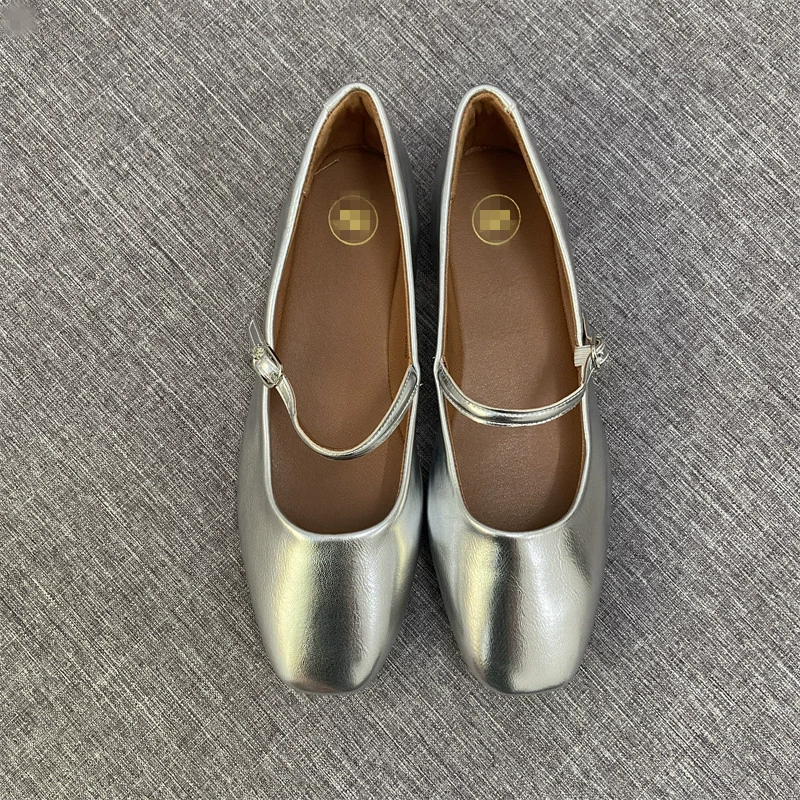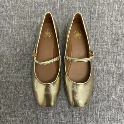 Foreign trade temperament square toe golden large size women’s shoes with one strap