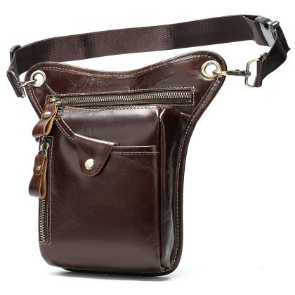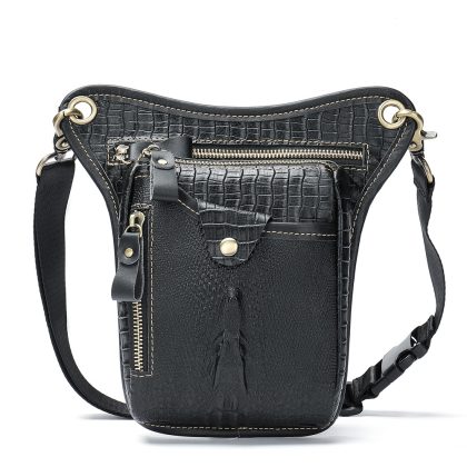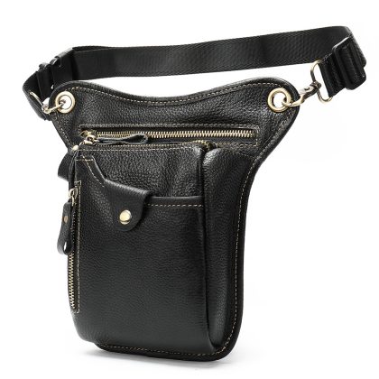 Foreign trade wholesale men’s denim leather leg bag outdoor sports leather mobile phone waist bag European and American motorcycle riding waist bag