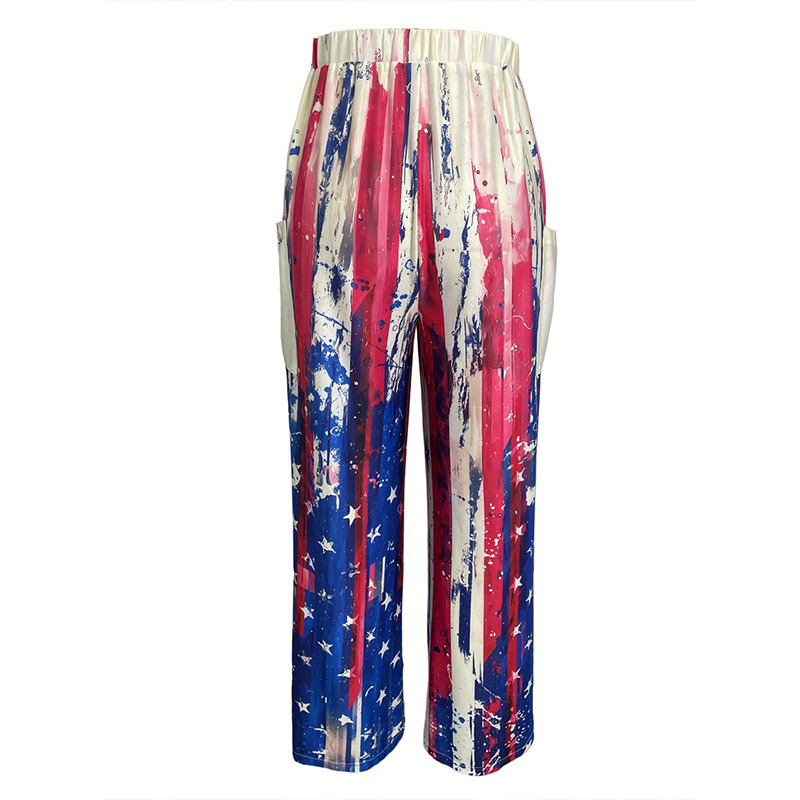 | nameOriginal | Foreign Trade Women's 2024 New Independence Day Printed Large Pocket Loose Waist Wide Leg Pants Commuting Contrast Straight Pants for Women |