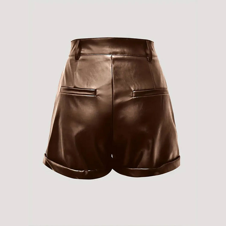 | nameOriginal | Foreign trade women's clothing 2024 spring and summer new women's commuter high waist pants foot curling double pocket PU shorts casual pants for women |