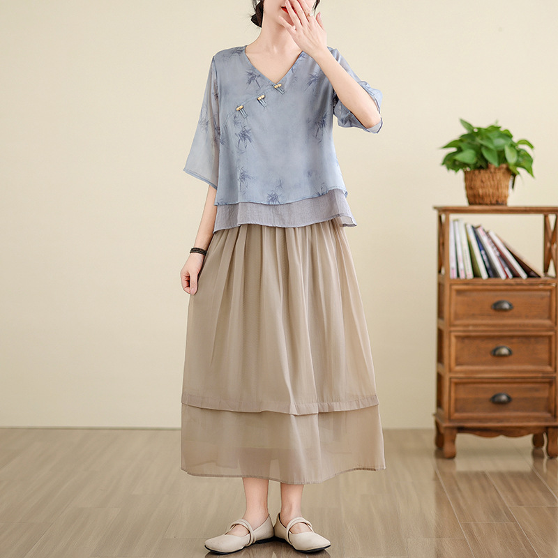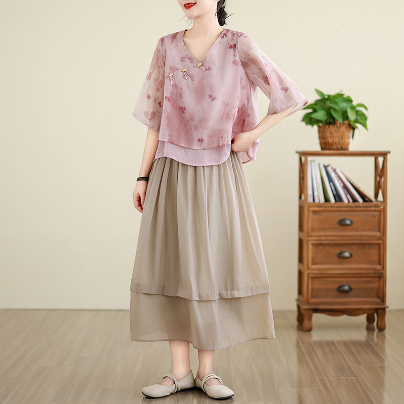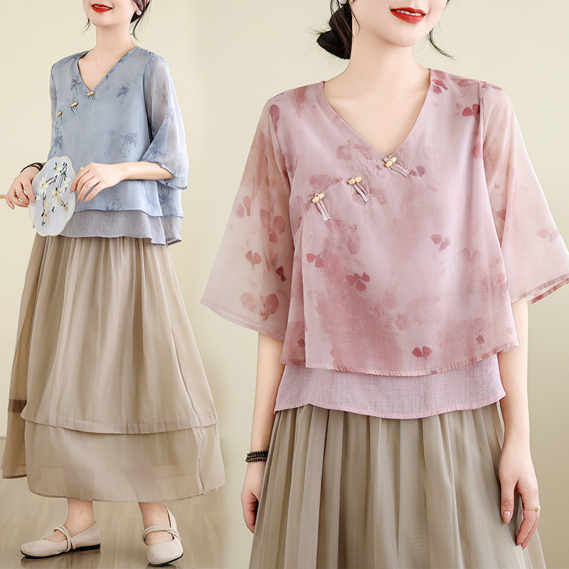 | nameOriginal | Foreign Trade Women's Clothing 2024 Summer Republic of China Style Tea Clothing Retro New Chinese Style Improved Hanfu Daily Cheongsam Set |