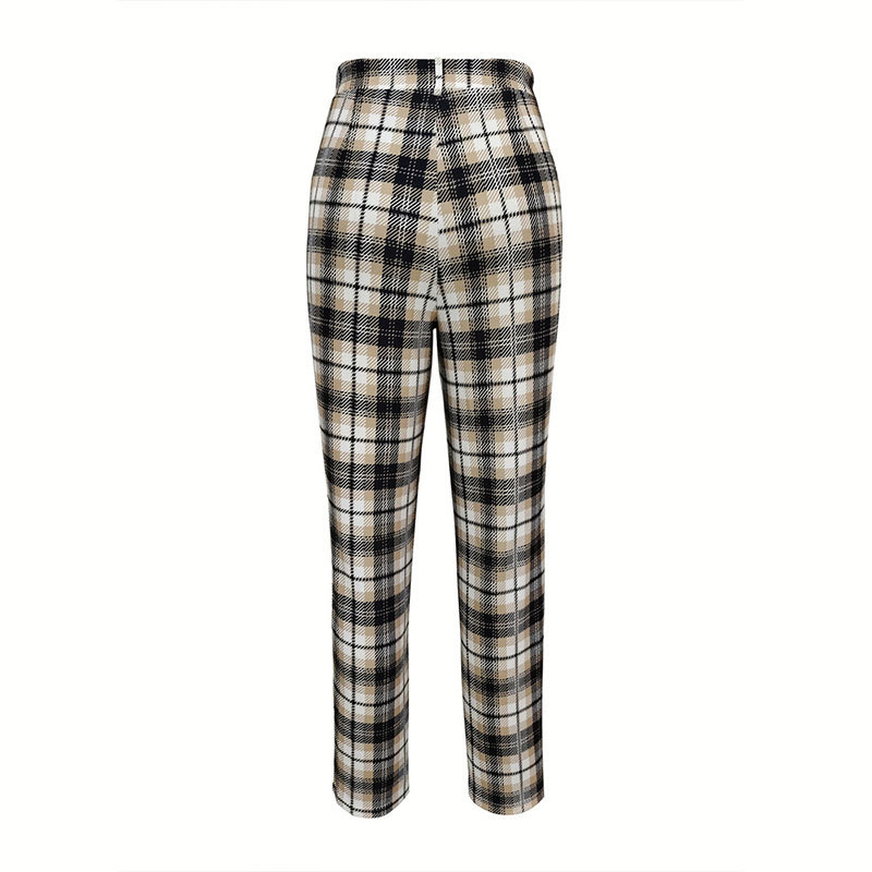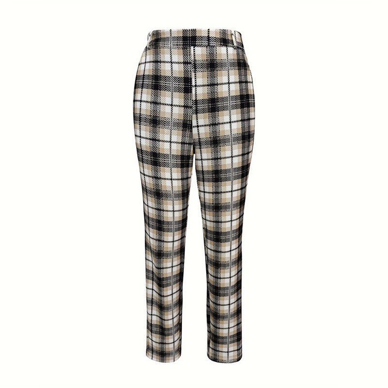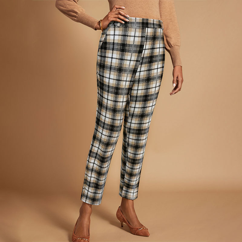 | nameOriginal | Foreign trade women's pants 2024 new elegant classic plaid printed elastic waist casual suit pants commuter women's pants |
