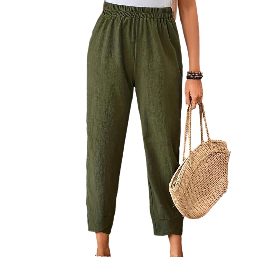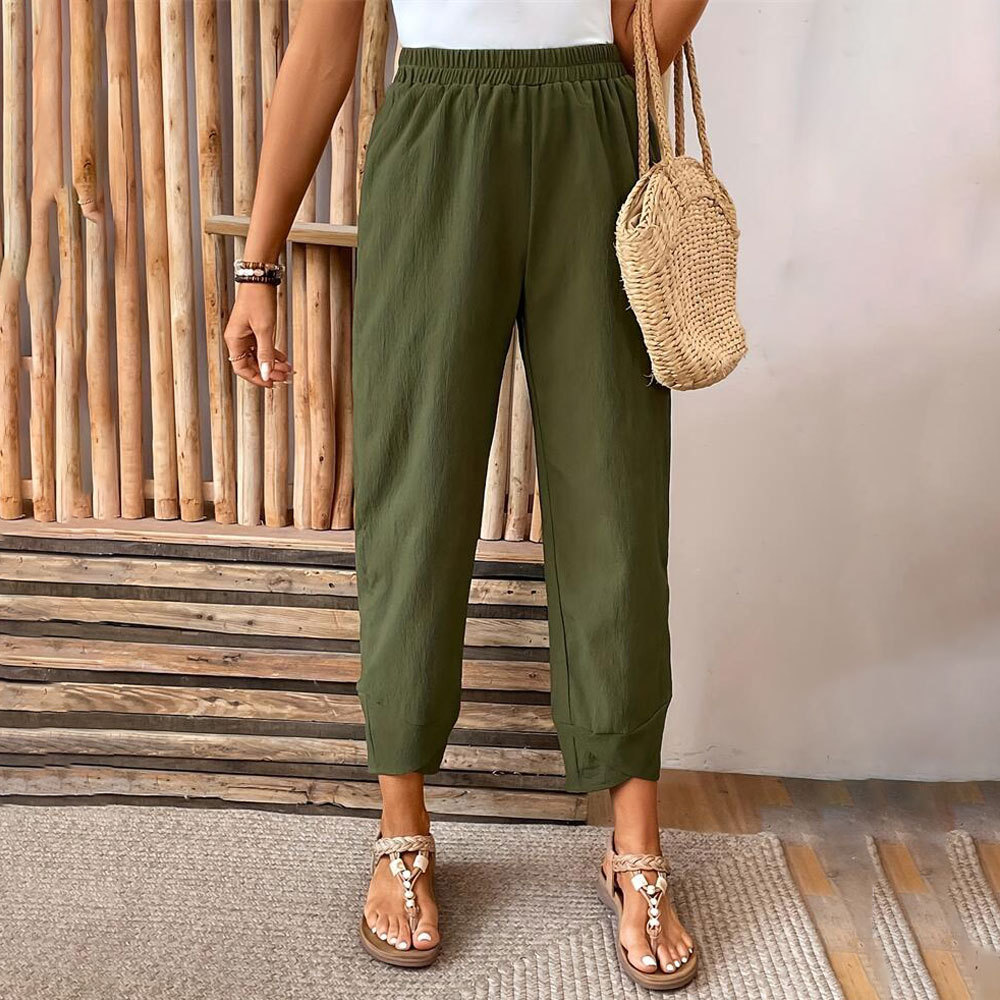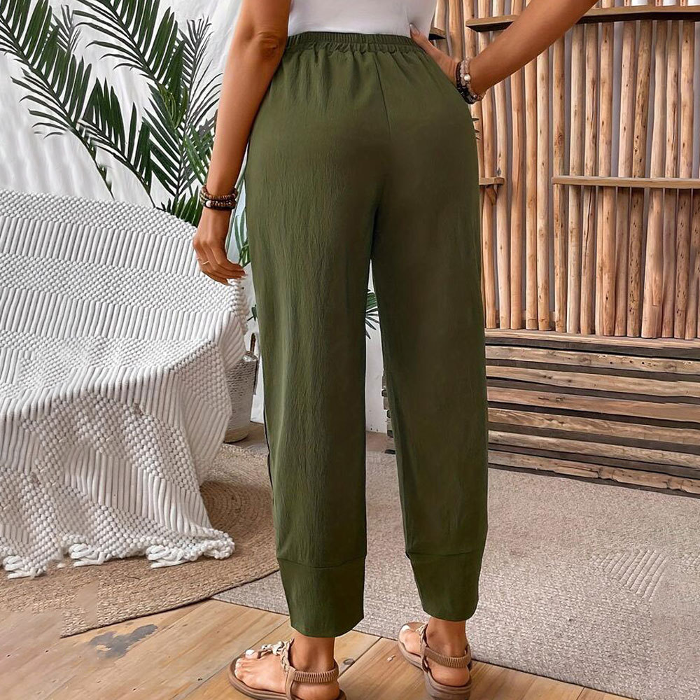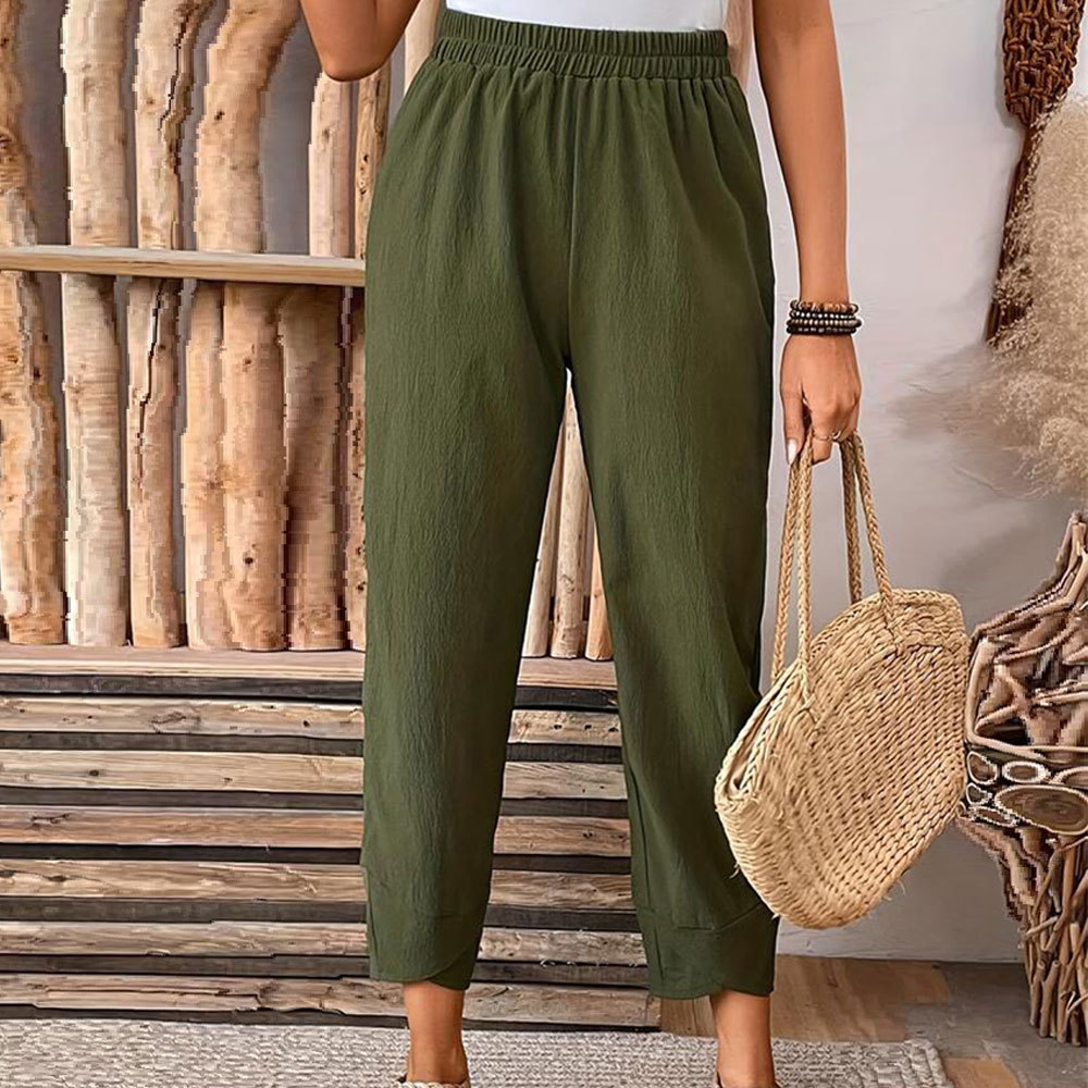 | nameOriginal | Foreign trade women's pants 2024 new elegant elastic waist texture cross pants corner design tapered pants women's pants |