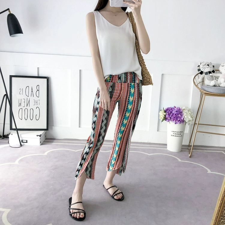 | nameOriginal | Foreign trade women's retro elastic waist printed cropped pants |