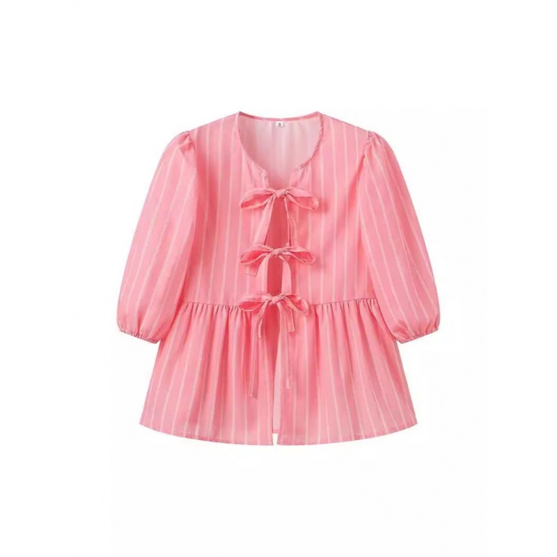 | nameOriginal | Foreign Trade ZA Women's Wear Wholesale French European and American Style Round Neck Lace-up Short Sleeve Shirt 2024 Summer New Casual Top |
