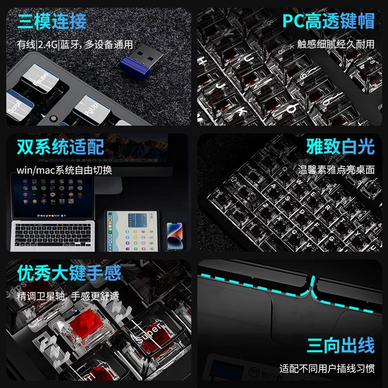| nameOriginal | Forerunner MT108 fog-penetrating wireless Bluetooth three-mode mechanical keyboard e-sports gaming office keyboard wired 87 keys |
