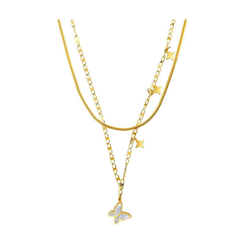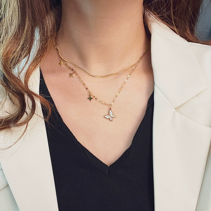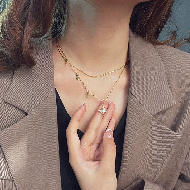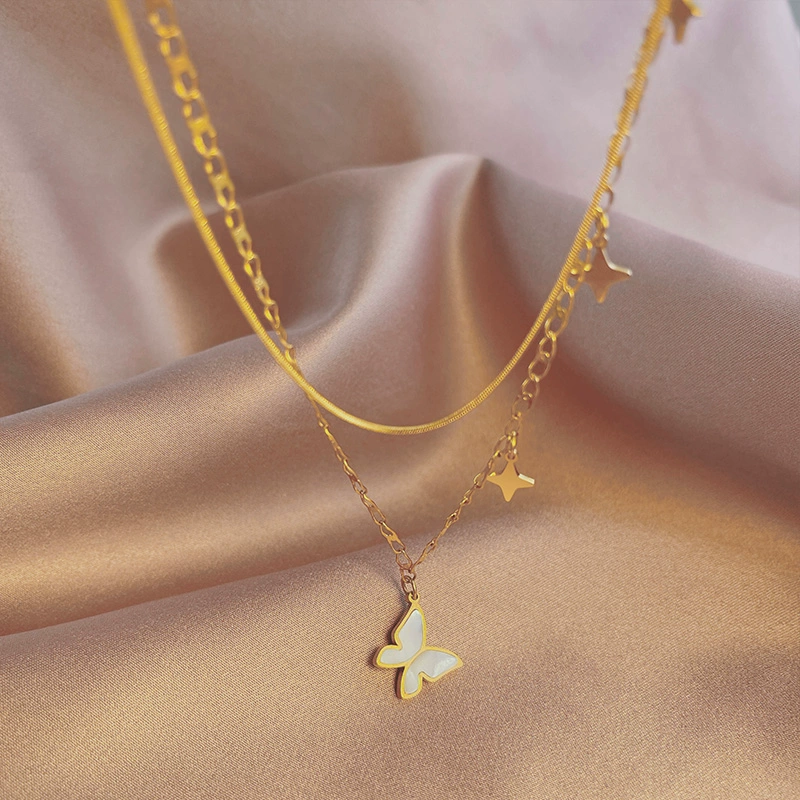 | nameOriginal | Forest butterfly necklace women's double-layer clavicle chain simple necklace titanium steel non-fading Internet celebrity jewelry temperament and personality |