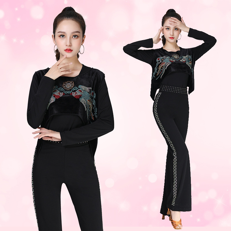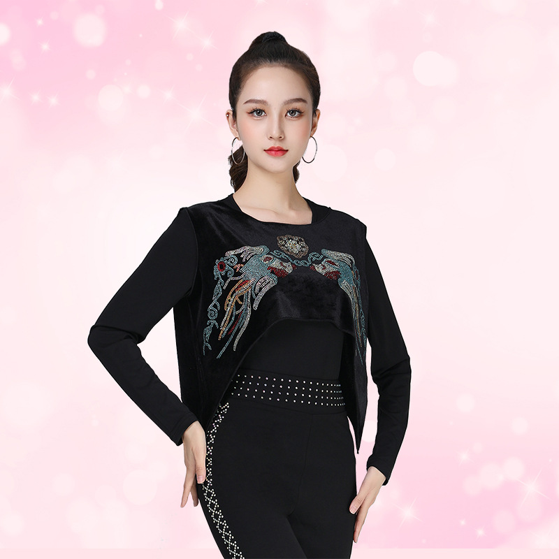 | nameOriginal | Forest Knight sailor dance clothing hot drilling Net red and black gold velvet dance clothing performance clothing vest female outer wear |