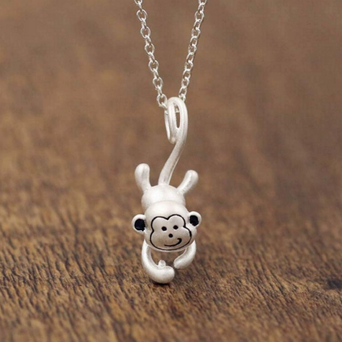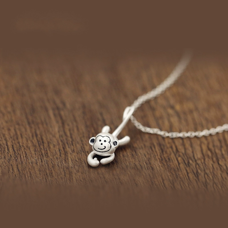 | nameOriginal | Forest series S925 sterling silver monkey fishing for the moon necklace female birth year fortune zodiac monkey simple fashion pendant clavicle chain |