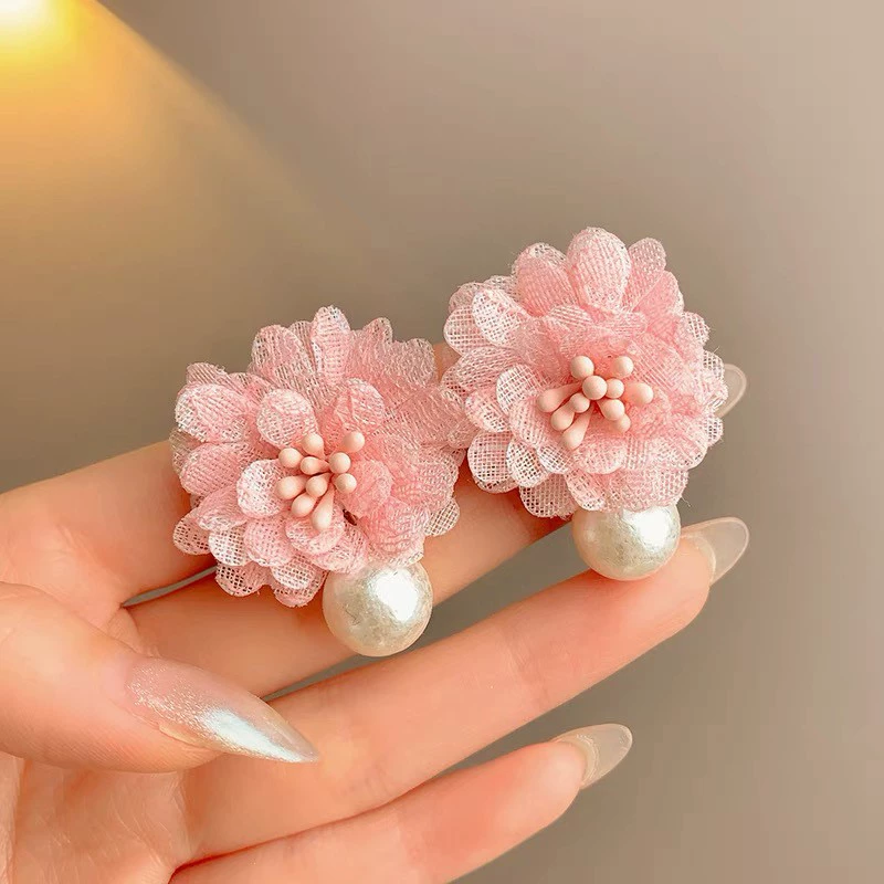 | nameOriginal | Forest style chiffon flower earrings 2024 new temperament pearl earrings niche design high-end earrings |