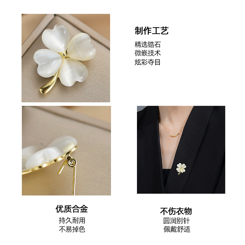 | nameOriginal | Four-leaf Clover Anti-light Artifact High-end Accessories Small Brooch Women's All-match Elegant Pin Fixed Clothes Suit Collar |