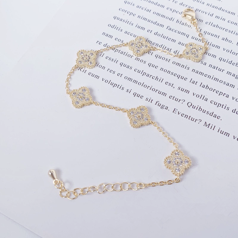 | nameOriginal | Four-leaf clover bracelet for women, high-end, light luxury, niche design, high-end zircon, ultra-sparkling temperament, lady-style hand jewelry |