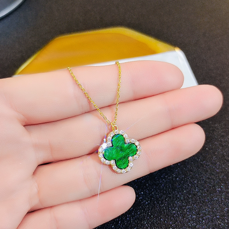 | nameOriginal | Four-leaf clover necklace female Internet celebrity summer diamond temperament green necklace niche clavicle chain 2024 new neck jewelry |