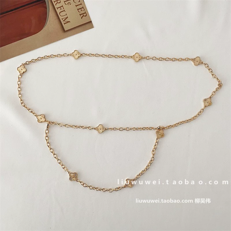 Four-leaf clover women’s retro metal shirt high-end waist chain
