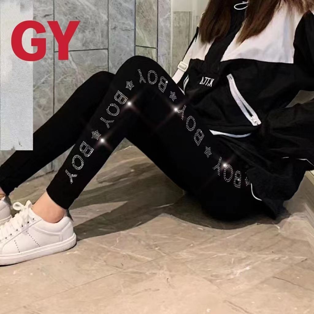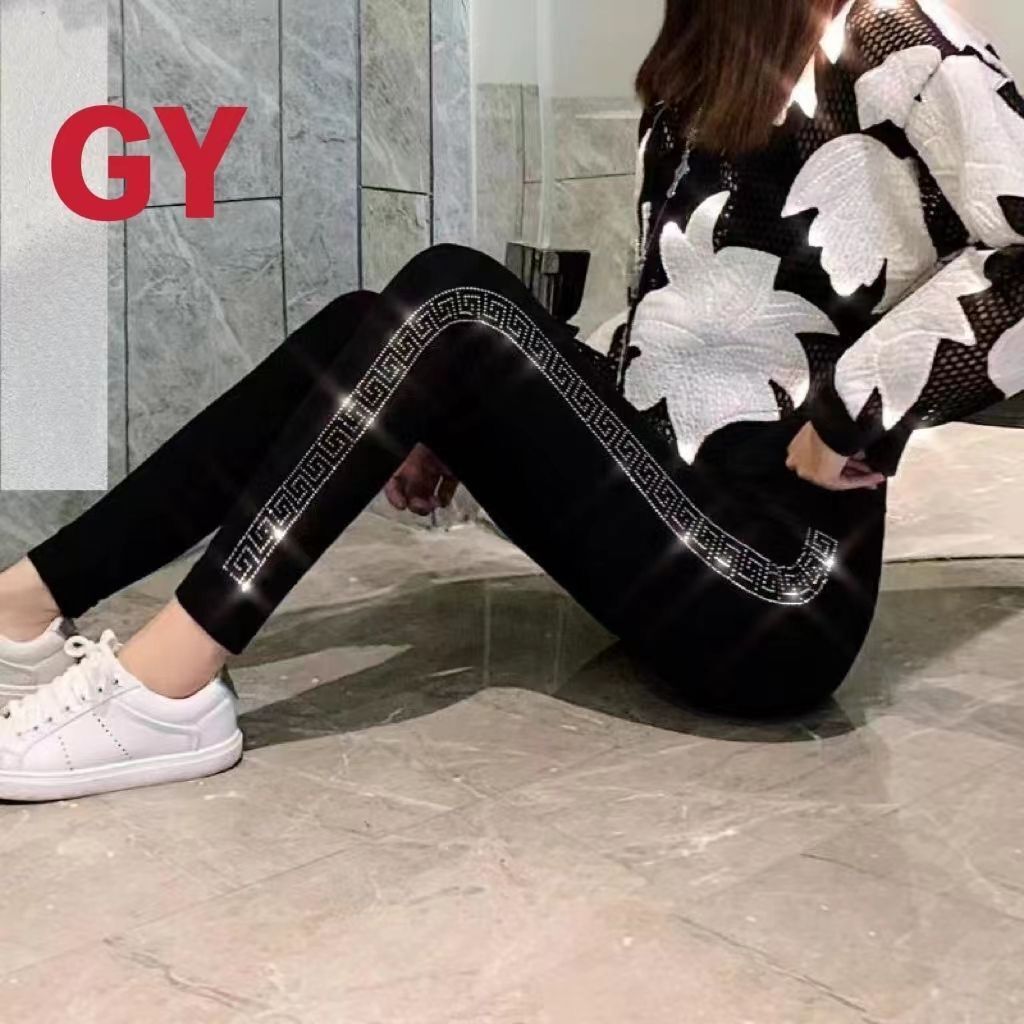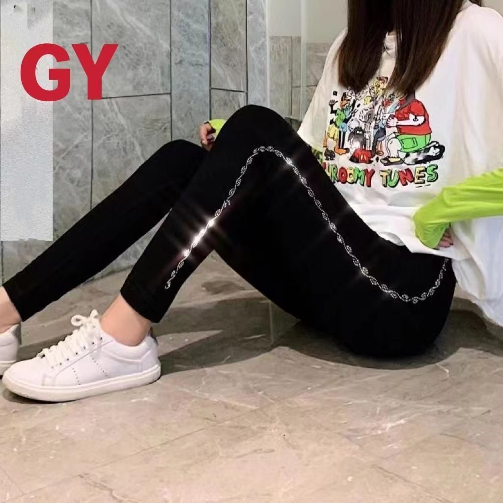 | nameOriginal | Four Seasons New High Waist Stretch Plus Fat Leggings Women's Outer Wear chubby girl plus size Slimming Hot Drilling Hip All-match Trousers |