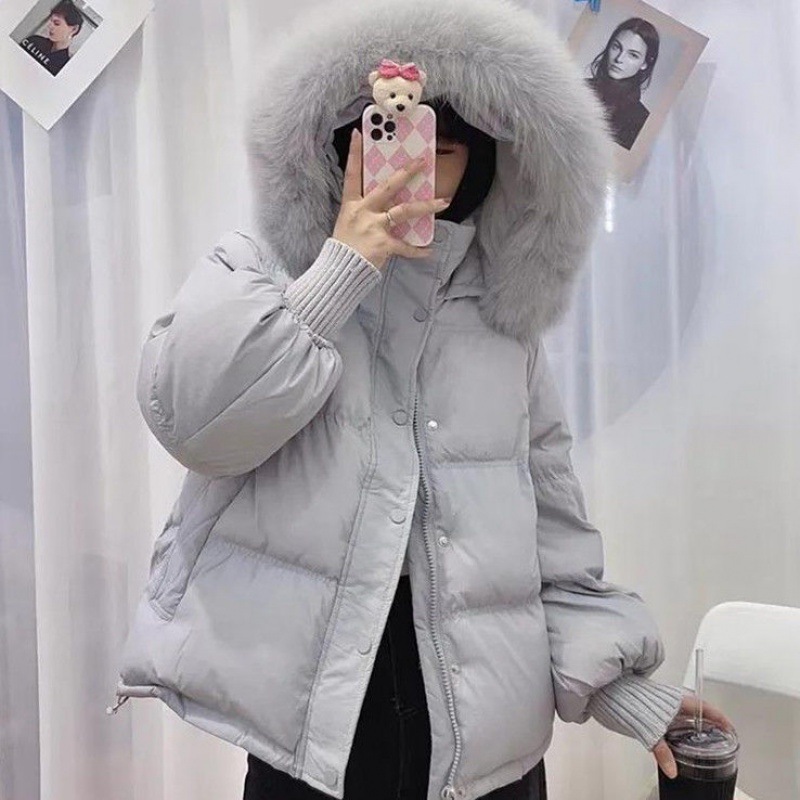 | nameOriginal | Fox fur collar down jacket women's short thickened 2023 Winter new Korean style loose sweet bread jacket small |