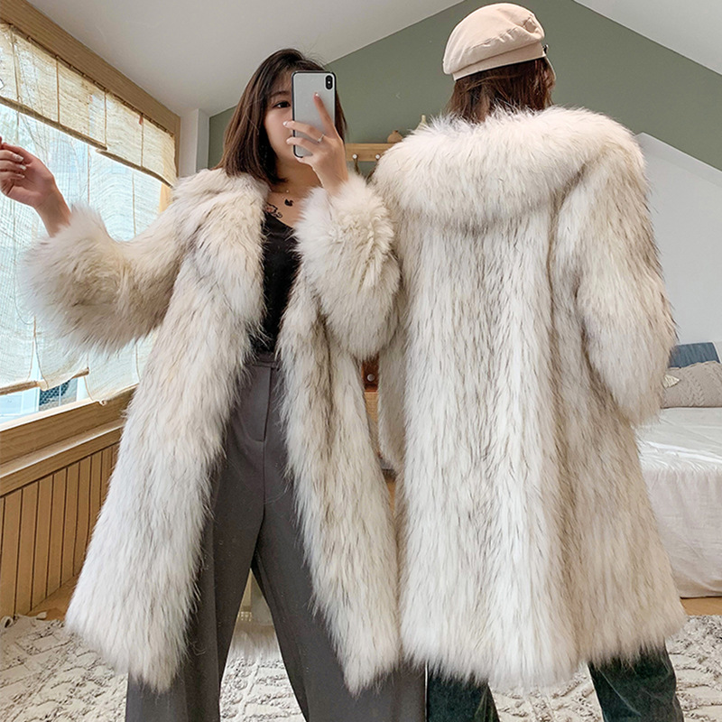 | nameOriginal | Fox fur faux fur coat women's long new autumn and winter warm raccoon fur coat large size casual trench coat |