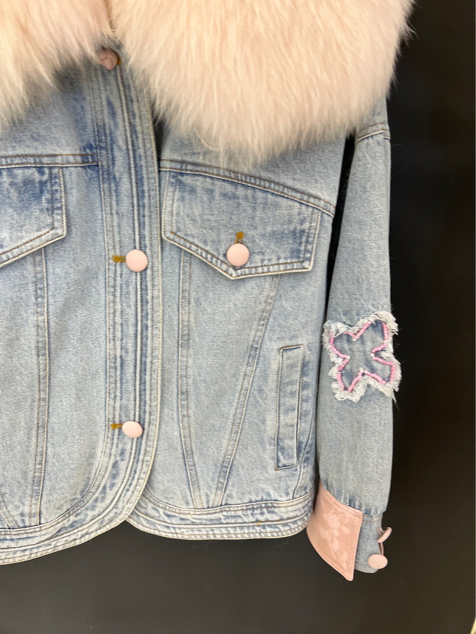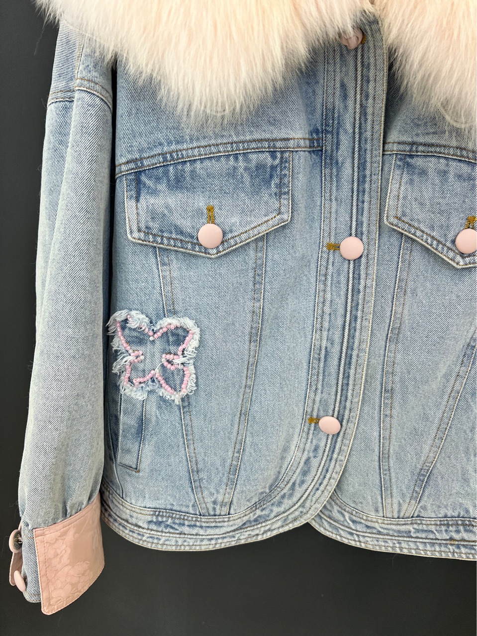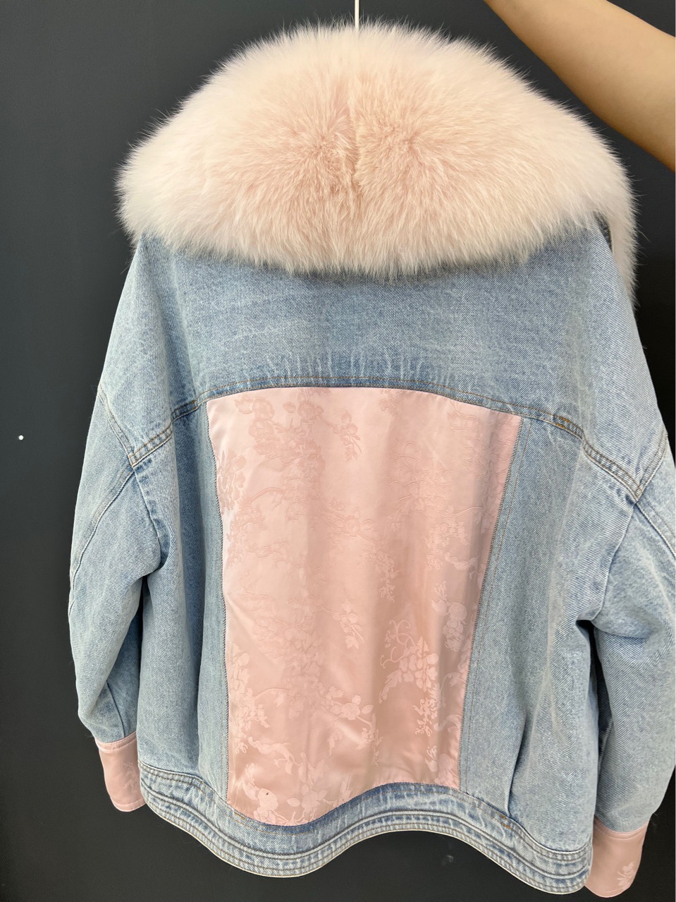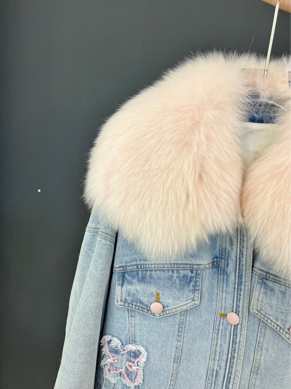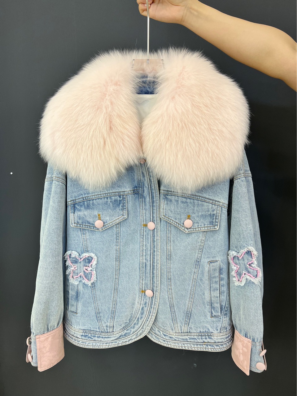 | nameOriginal | Fox fur stitching Denim embroidered fur coat 2023 new contrast color design Young light luxury goose down parka |