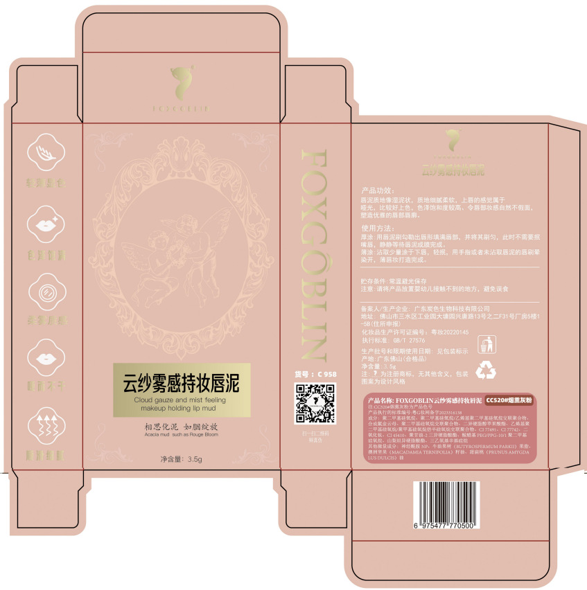 | nameOriginal | FOXGOBLIN cloud yarn fog feeling makeup lip mud solid color lock Color Matte Velvet Lip Glaze Internet celebrity makeup source |