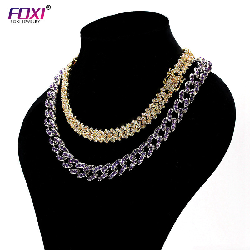 | nameOriginal | FOXI Cuban chain full inlaid zircon necklace jewelry bracelet jewelry suit men's and women's K gold solid color European and American cross-border Fashion |