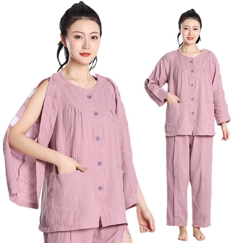 Fracture bed paralysis patient clothes easy to wear and take off hospital clothes nursing clothes spring and summer yarn cotton cotton pajamas