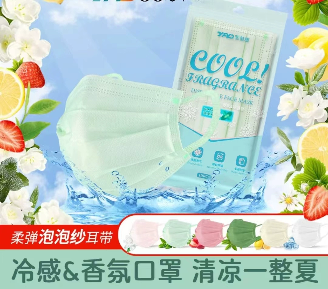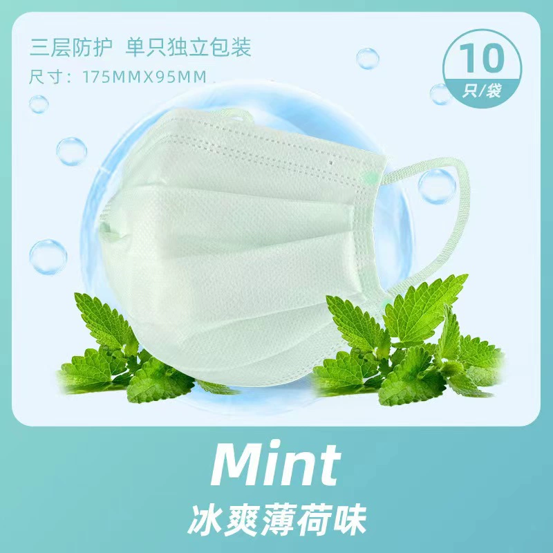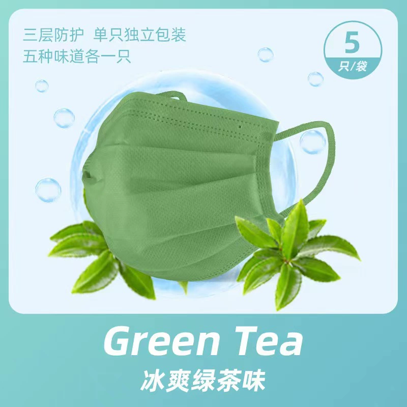 | nameOriginal | Fragrance cold three-dimensional mask mint lemon green tea widened ear straps of the same color 3D independent protective KN95 adult |