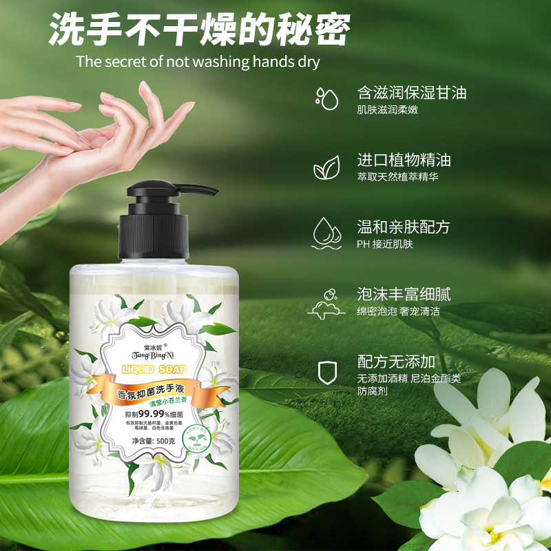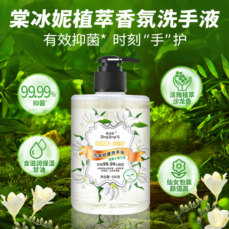 | nameOriginal | Fragrance hand sanitizer household antibacterial moisturizing hand freesia perfume foam rich does not hurt the hand 500g pack |