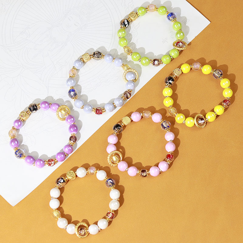 Fragrant gray porcelain bracelet female gold foil glaze zachilam Wenwan Duobao Buddha beads tourist scenic spot hot sale jewelry
