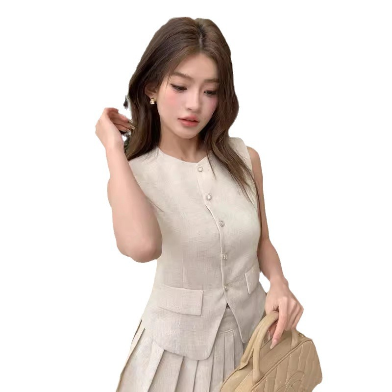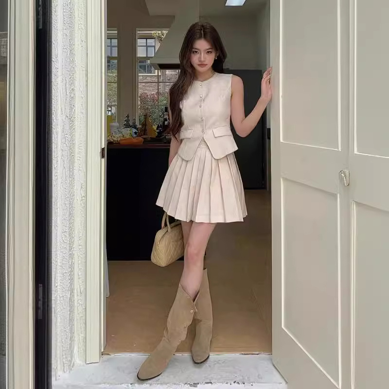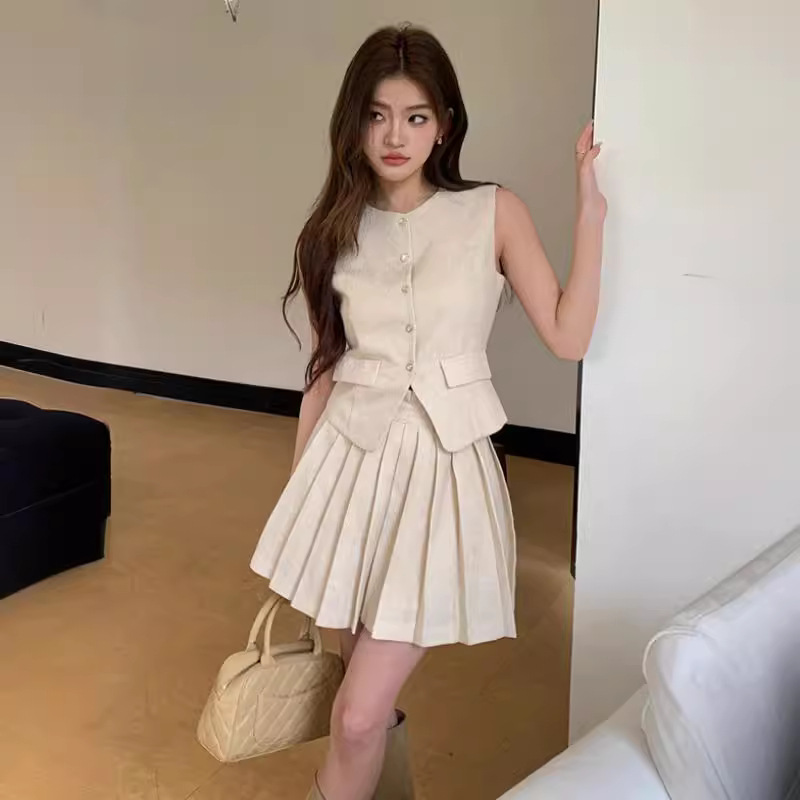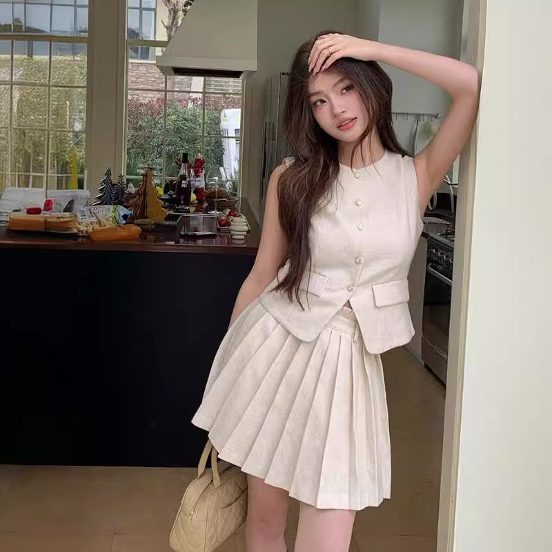 | nameOriginal | Fragrant Style Daughter suit Women's 2024 Spring New Elegant Light Luxury Socialite Vest High Waist Pleated Skirt Two-piece Set |