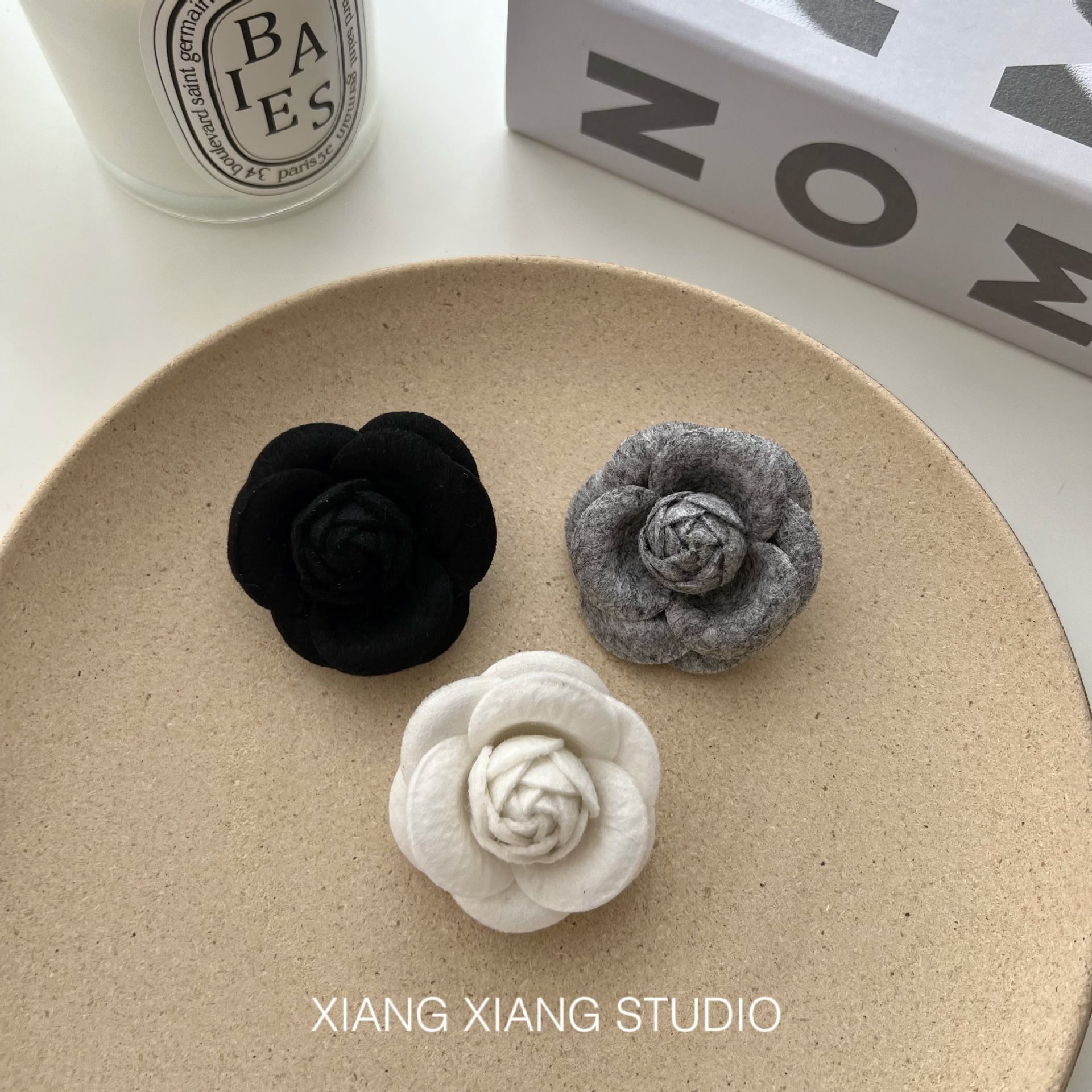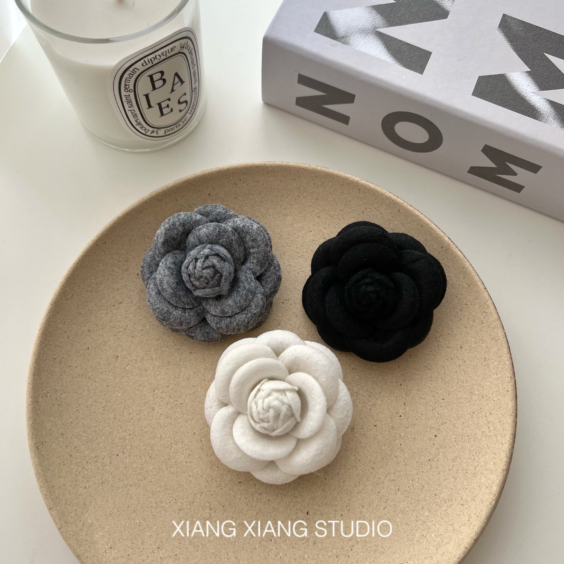 | nameOriginal | Fragrant Style Hand-made Camellia Black and White Gray Flower Stereo Brooch Collar Flower Pin Decoration with Mini small size |