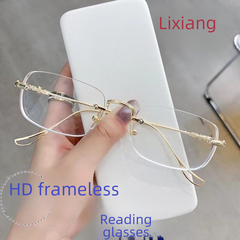 Frameless anti-blue light reading glasses men's fashionable middle-aged and elderly high-definition reading glasses women's single optical Internet-famous same-style glasses