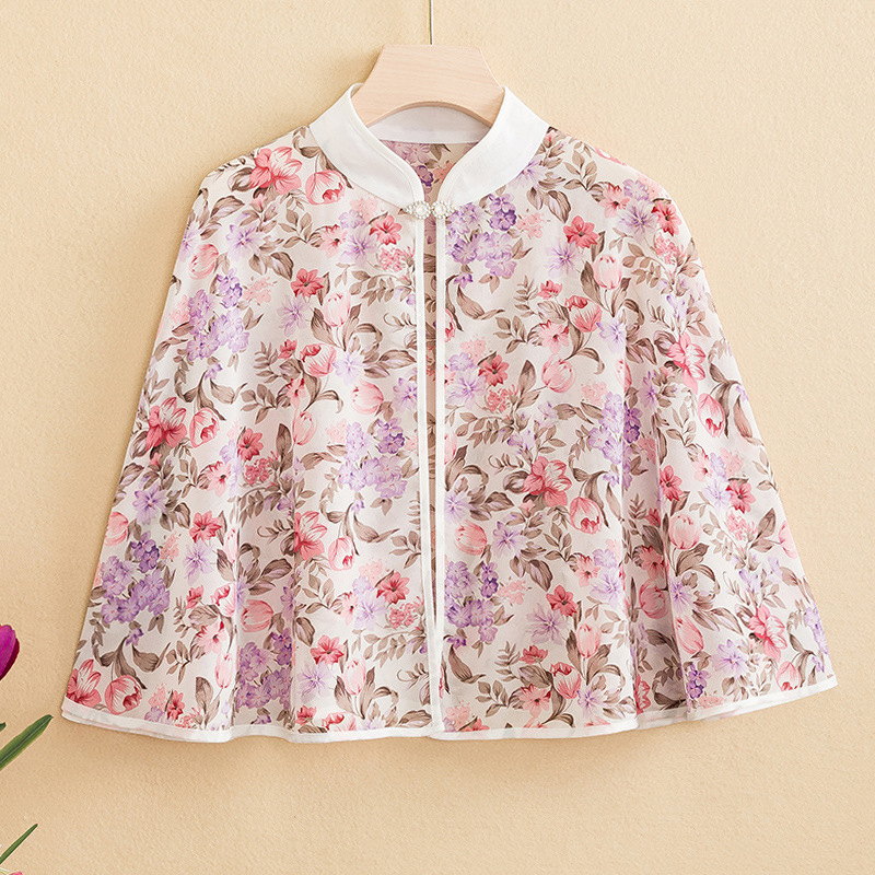 | nameOriginal | Fredayi 9610 Summer chiffon printed shawl retro style sleeveless cape shawl for women with skirt |