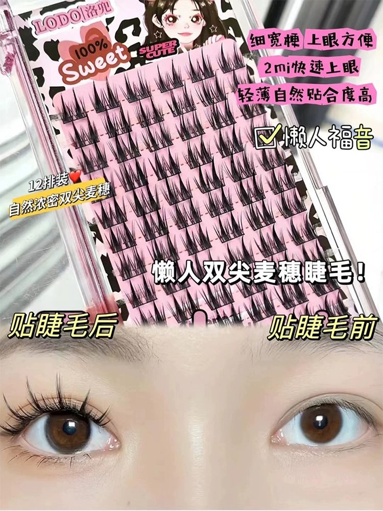 Free glue tweezers! LODO Luodou Double Spire Wheat Ear False Eyelashes Thin Stem Thick Segmented Little Devil