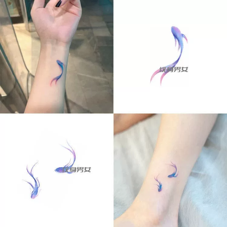 Free shipping ankle sexy blue koi tattoo sticker waterproof