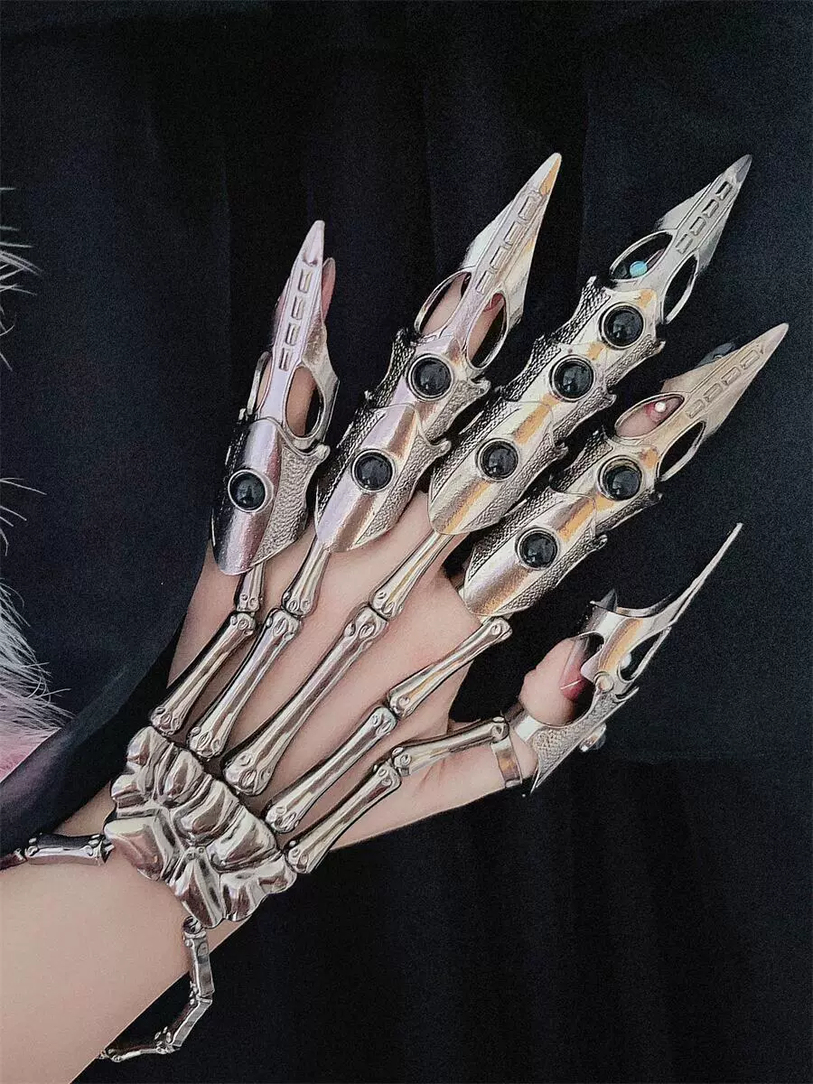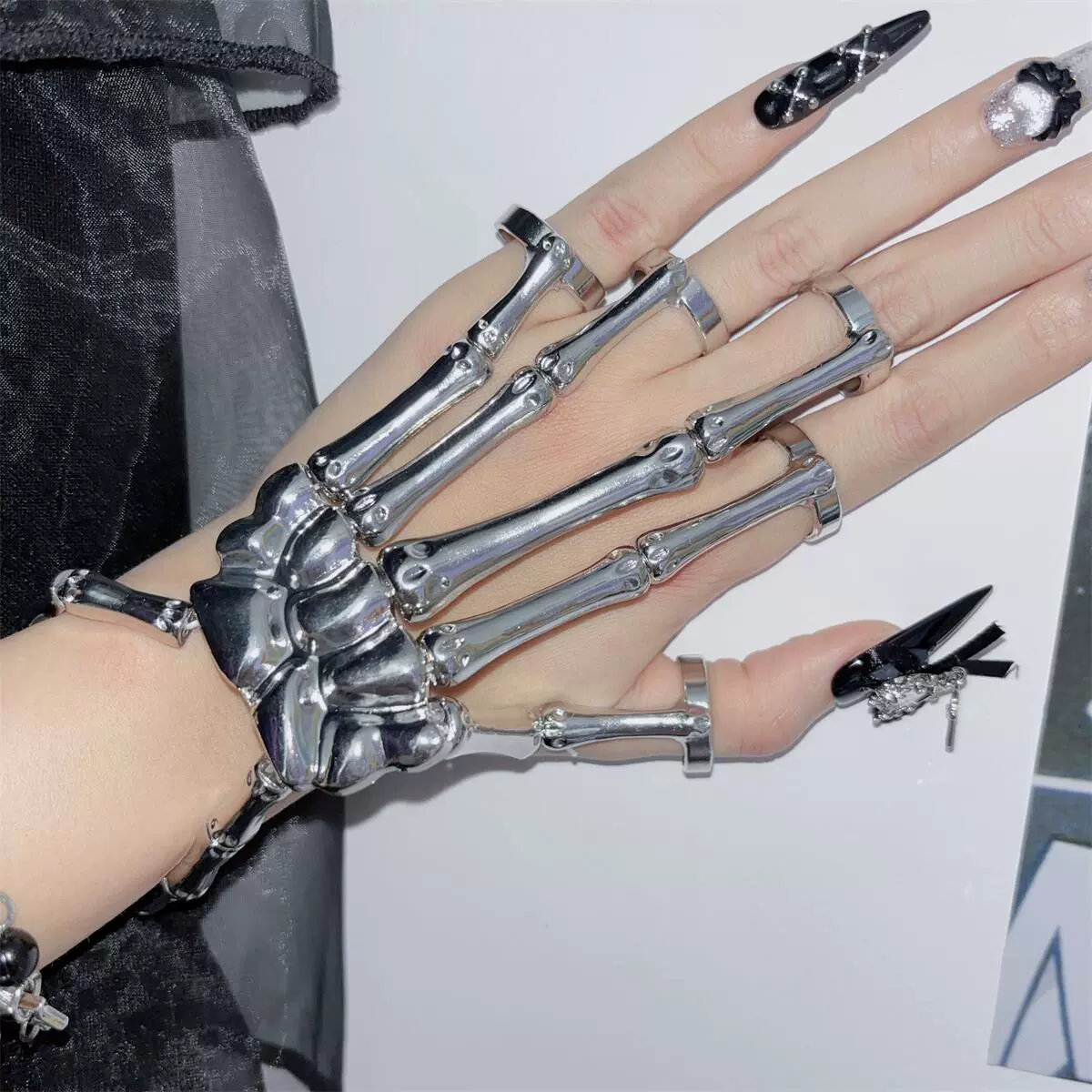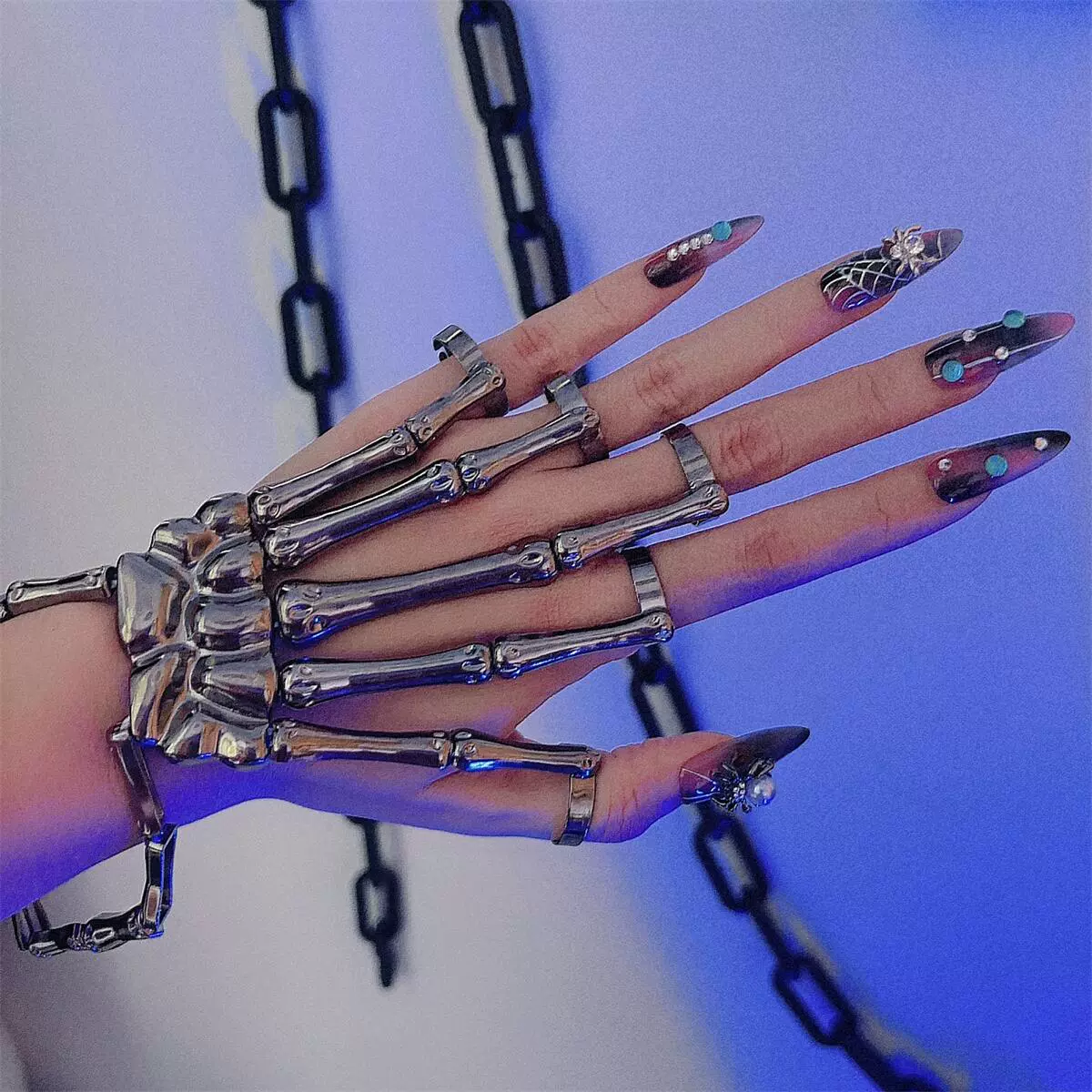 Free shipping European and American punk INS design cyberpunk men's and women's joint niche ring ring skull bone bracelet