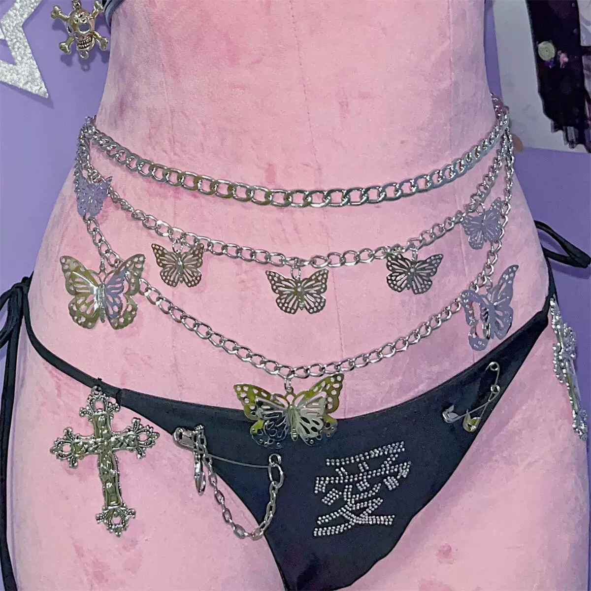 | nameOriginal | Free shipping European and American style INS hollow butterfly Y2K millennium hot girl retro street waist chain decoration Yabi pants chain skirt chain |