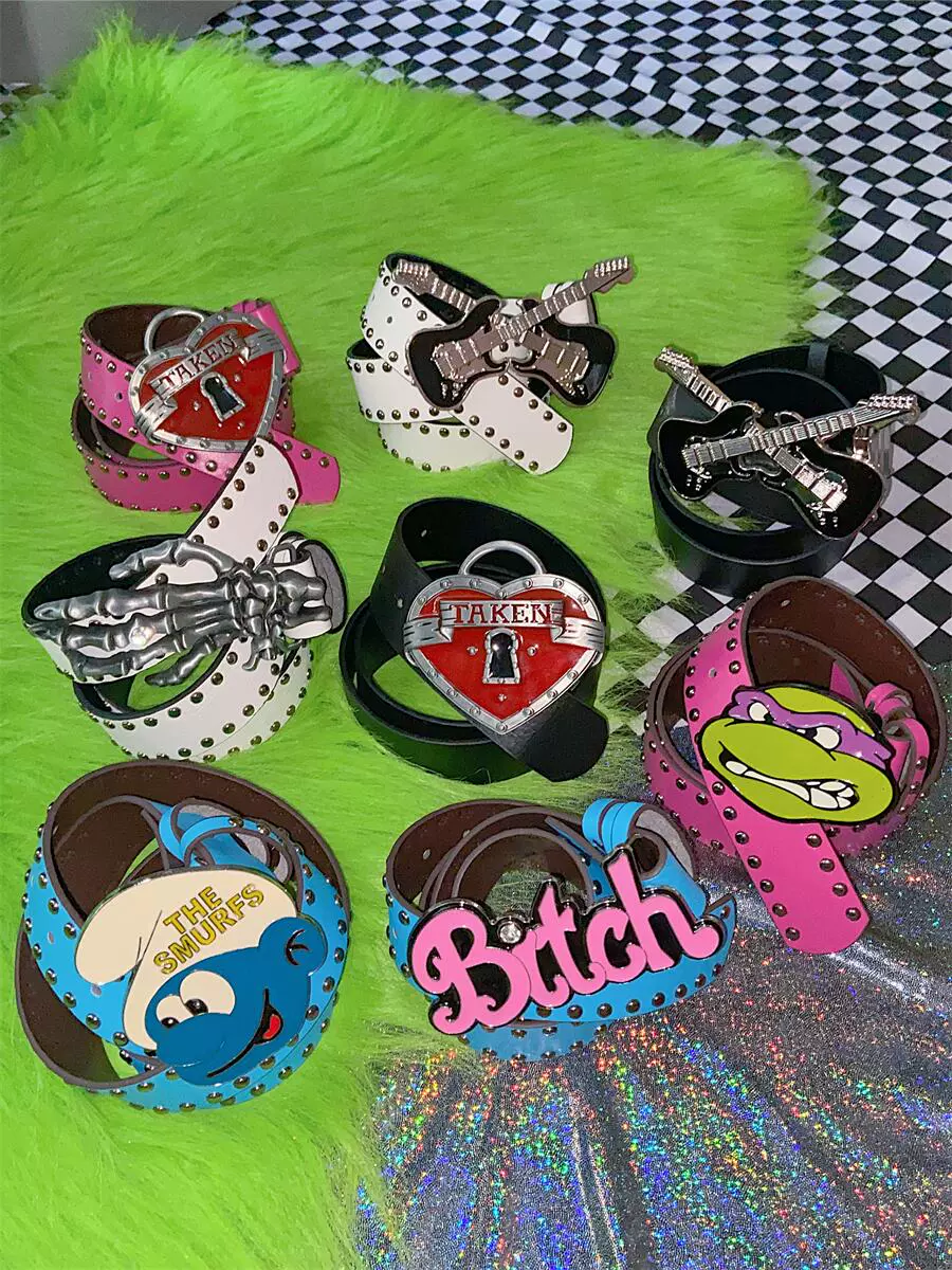 | nameOriginal | Free shipping exaggerated INS Harajuku Y2K Millennium hot girl European and American street letter guitar Yabi love lock rivet belt |
