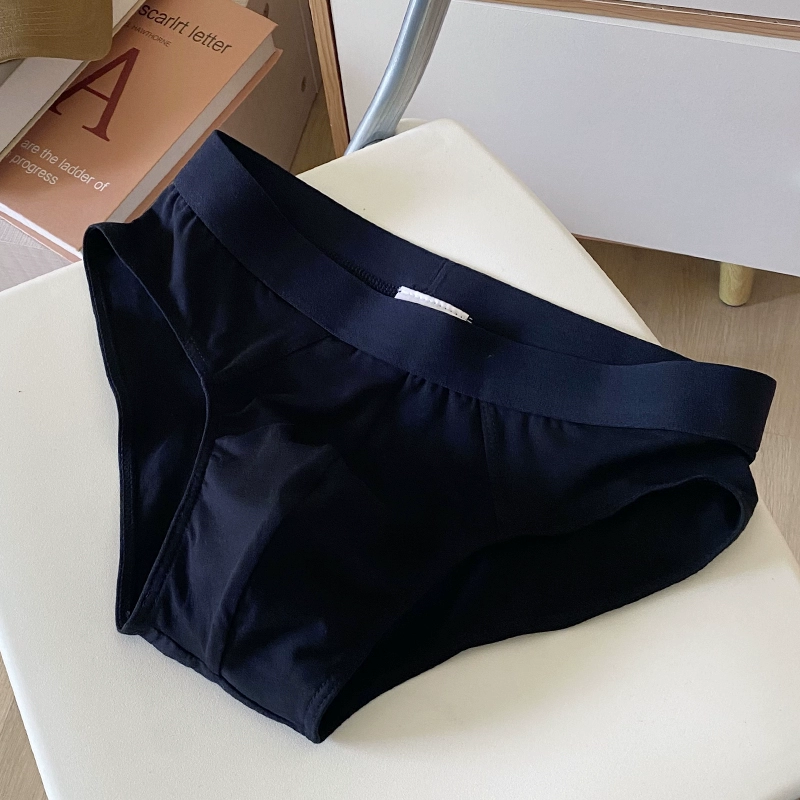Free shipping for 3 pairs of young men's briefs, cotton solid color, mid-waist, large pouch, simple briefs for boys, breathable