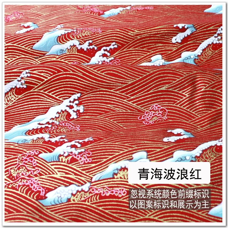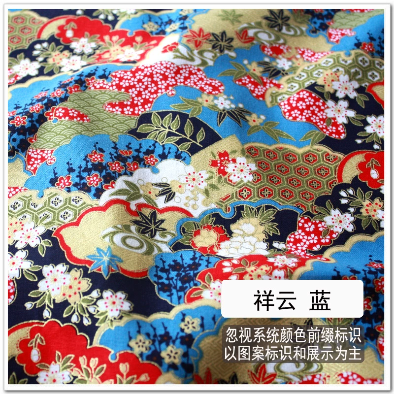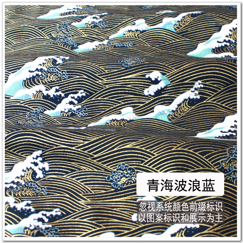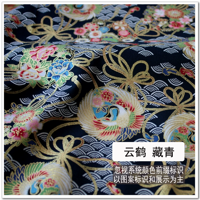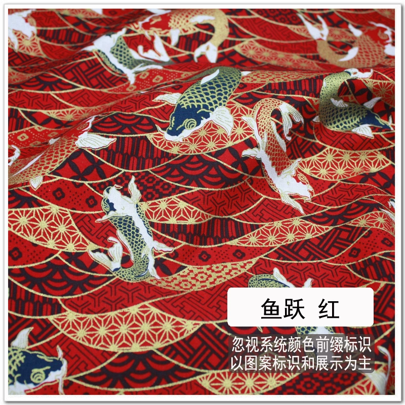 Free shipping Japanese style hot stamping fabric, gold bag fabric, cotton handmade fabric, cherry blossom, koi, butterfly wave