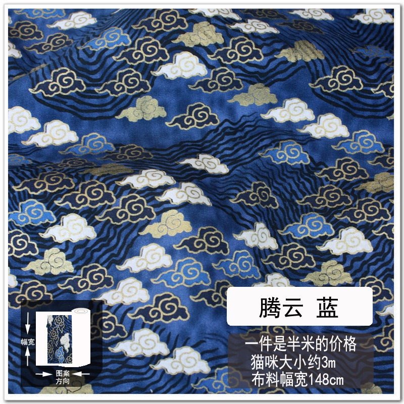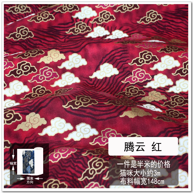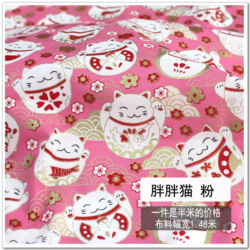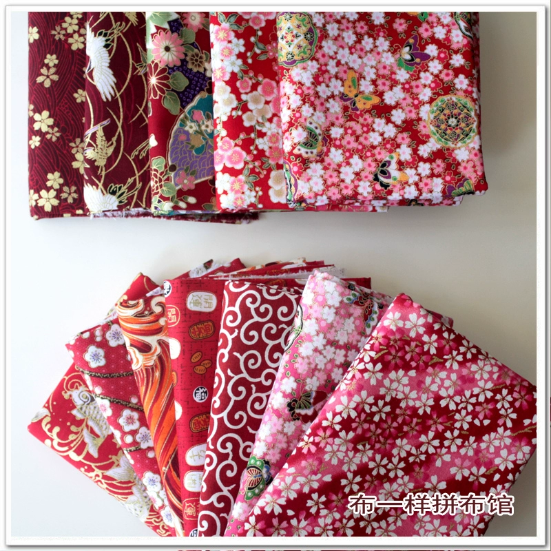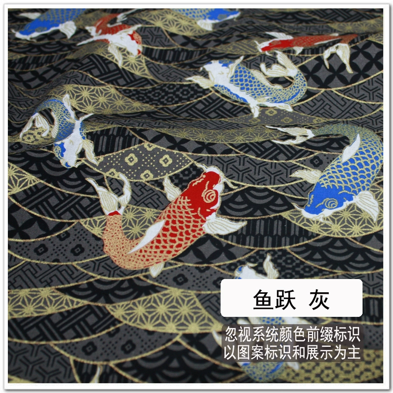 Free shipping Japanese style hot stamping fabric, gold bag fabric, cotton handmade fabric, cherry blossom, koi, butterfly wave