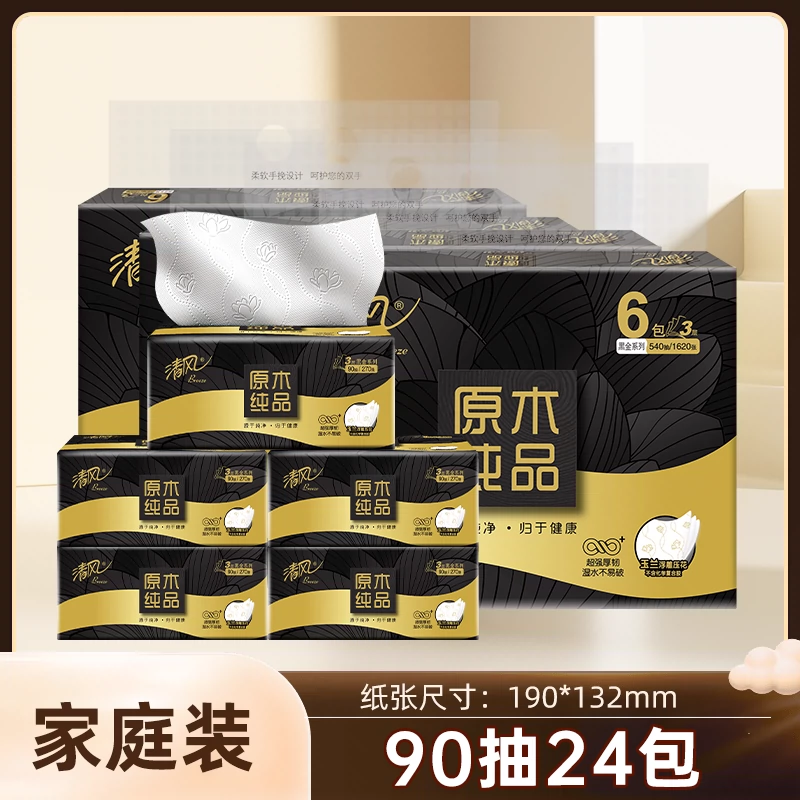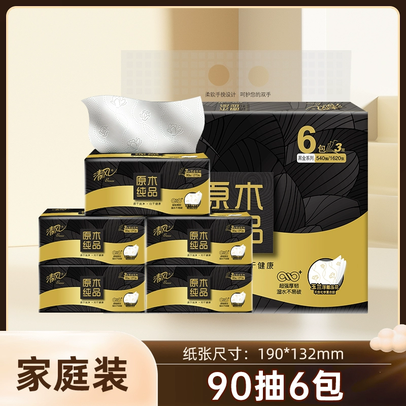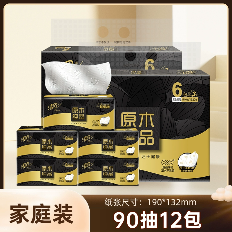 | nameOriginal | [Free shipping] Qingfeng tissue black gold 3 layers 90 draws 6/12/24 pack S three-dimensional embossed napkins facial tissue |